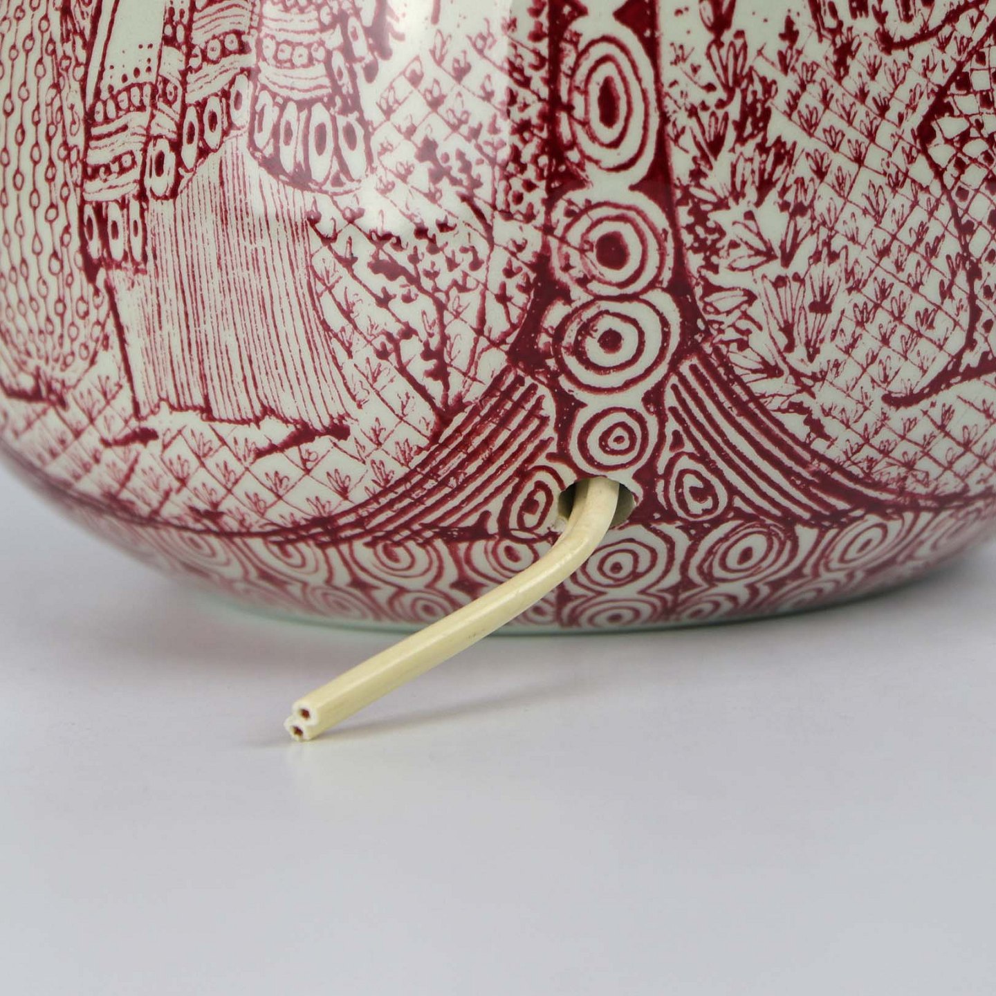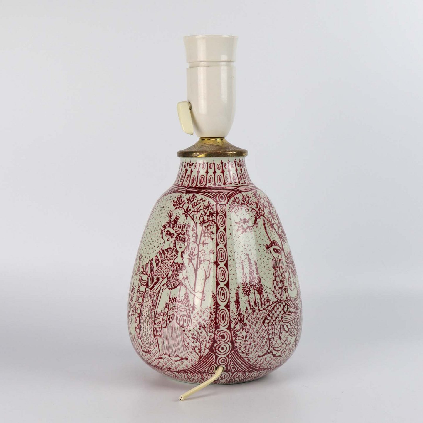 Lampefod i porcelæn og messing med motiv af de fire årstider i harlekinform udført i rød streg nr. 5173-244