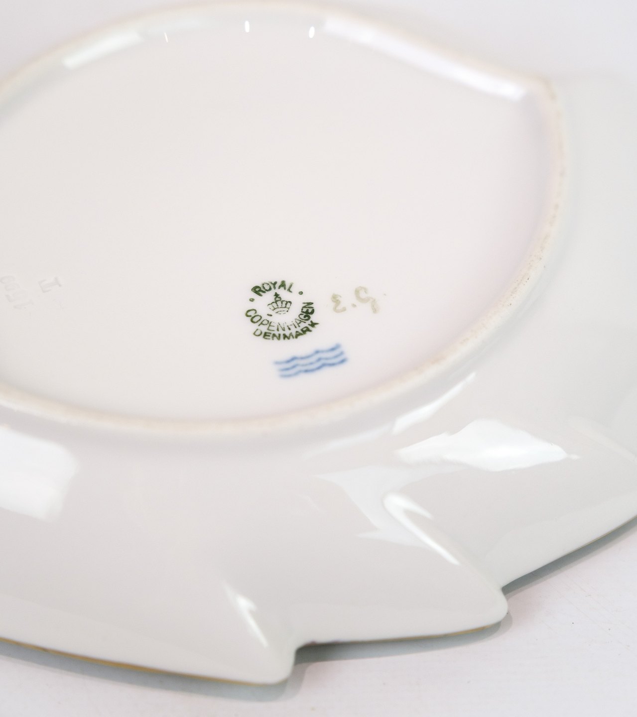 Bladformet Fad - Kgl. Saksisk Blomst - Håndmalet - Dekoreret Med Guld - Royal Copenhagen - Ca. År 1923