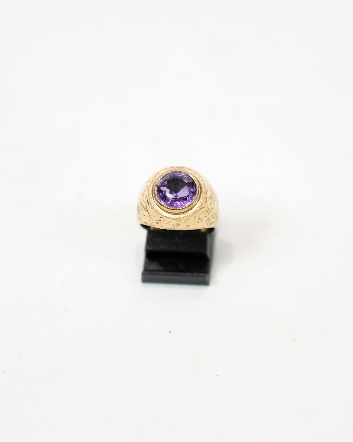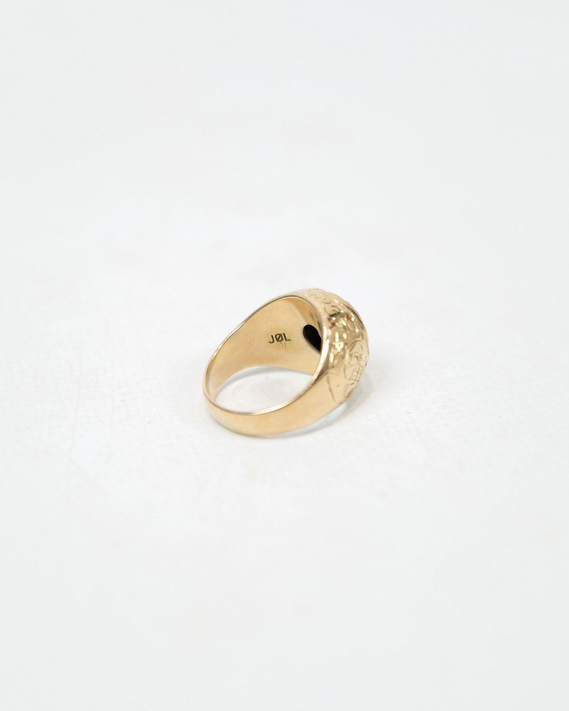 Denne Ring er fremstillet af 14 karat guld og udsmykket med en flot ametyst. Ringen er stemplet med JØL. Ametysten er kendt for sin flotte og rige lilla nuancer og er en populær ædelsten.