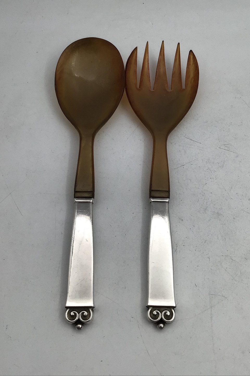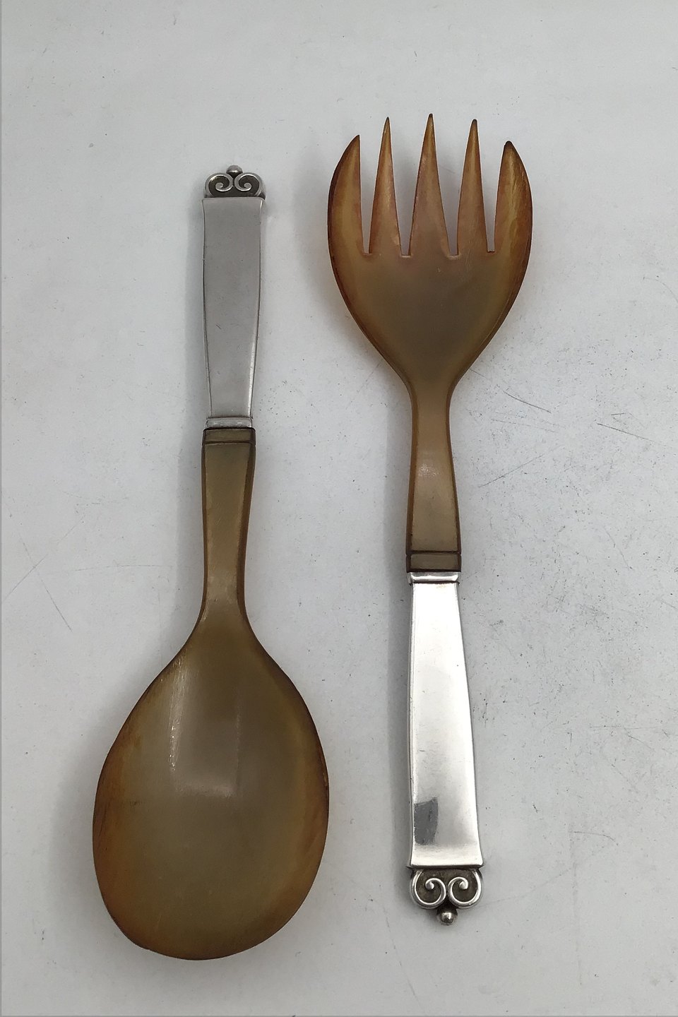 Evald Nielsen Silver No. 28 Salad Servers (Horn)