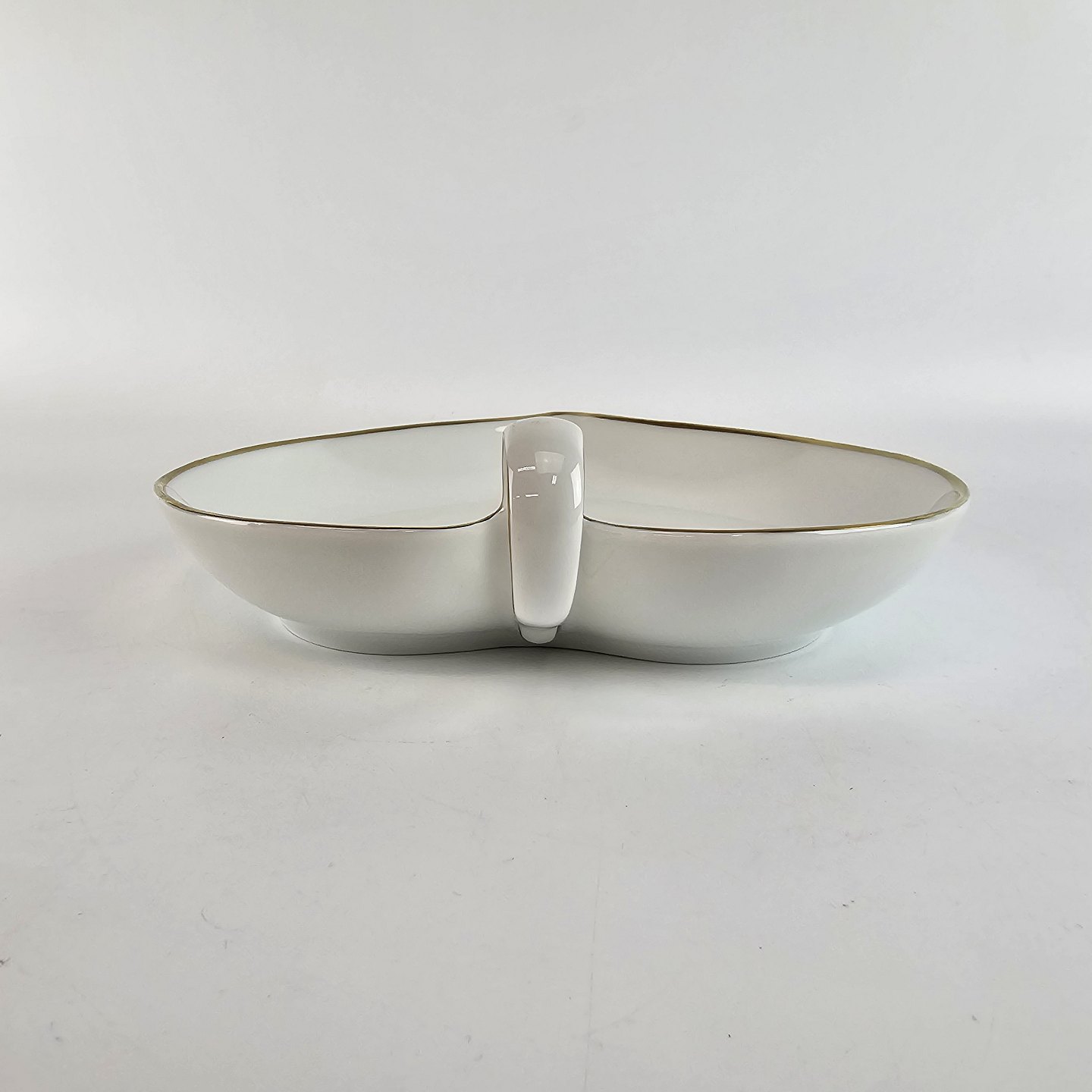 Aarestrup serien er af hvidt porcelæn dekoreret med kanter af guld. Brugsspor kan forekomme