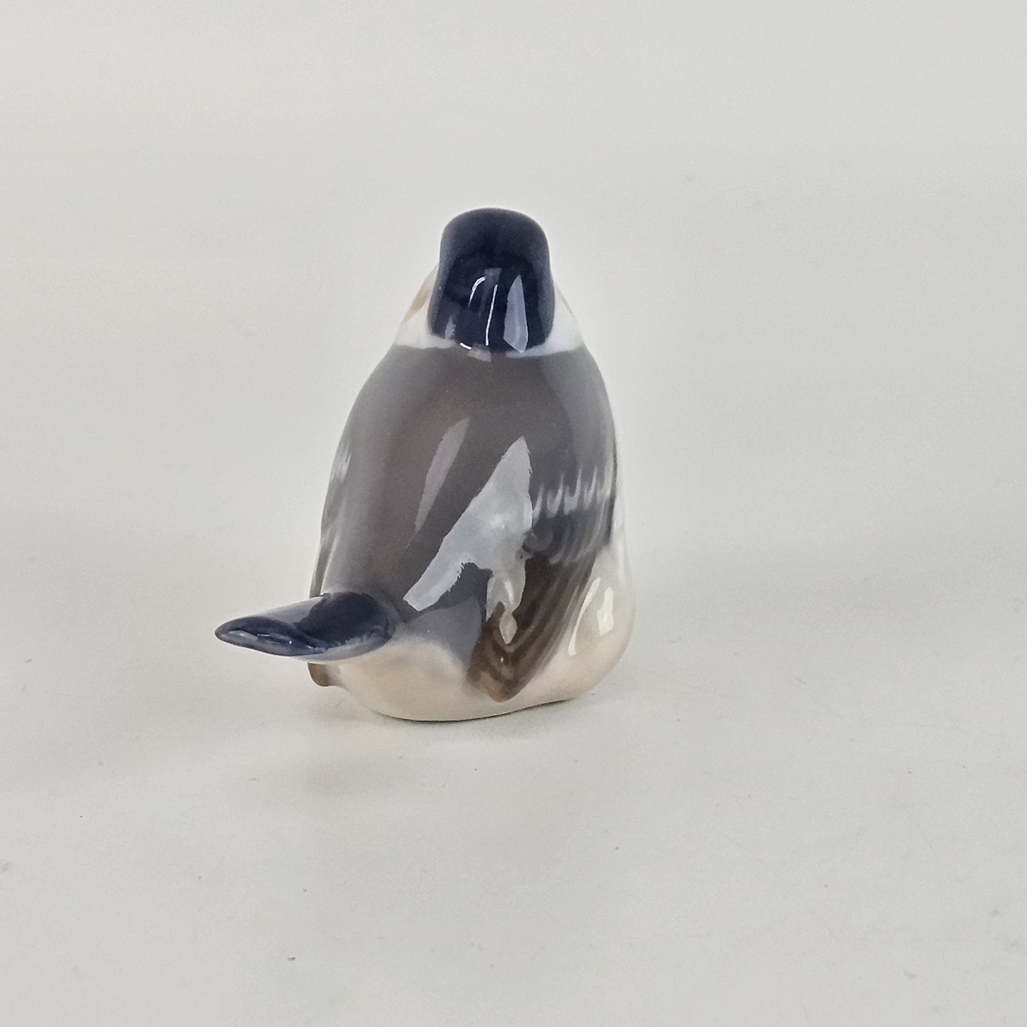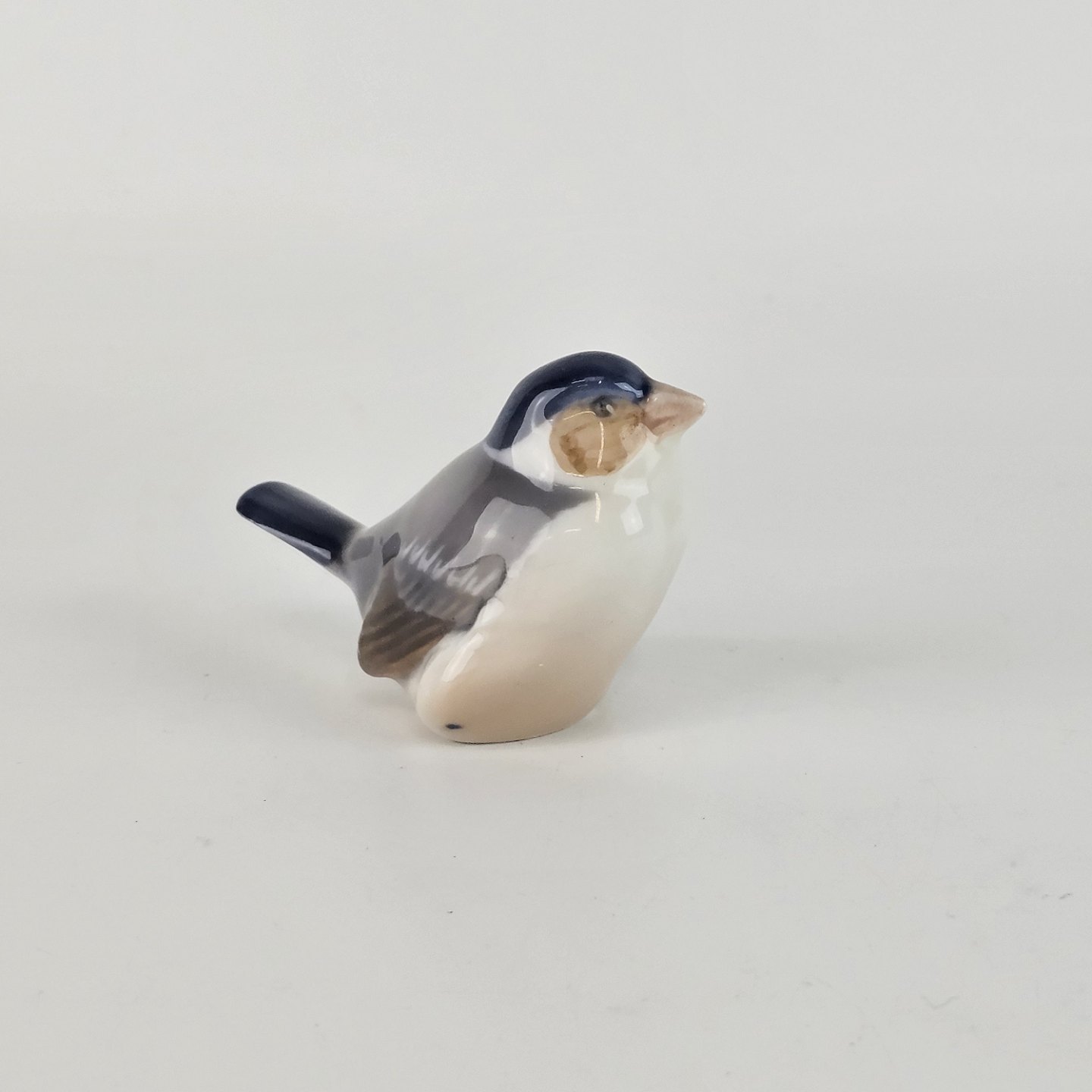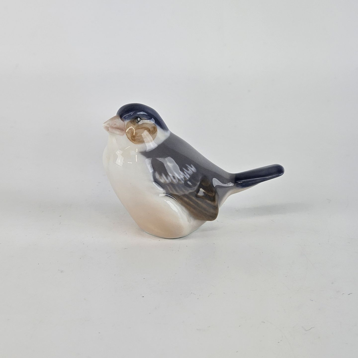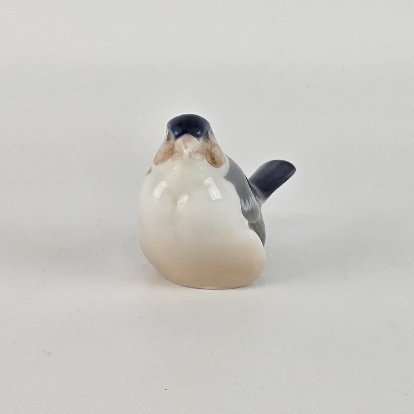 Fugl af porcelæn med motiv af fuglearten Finke. Figuren dekoreret med blå og grå farver. Nr. 1040