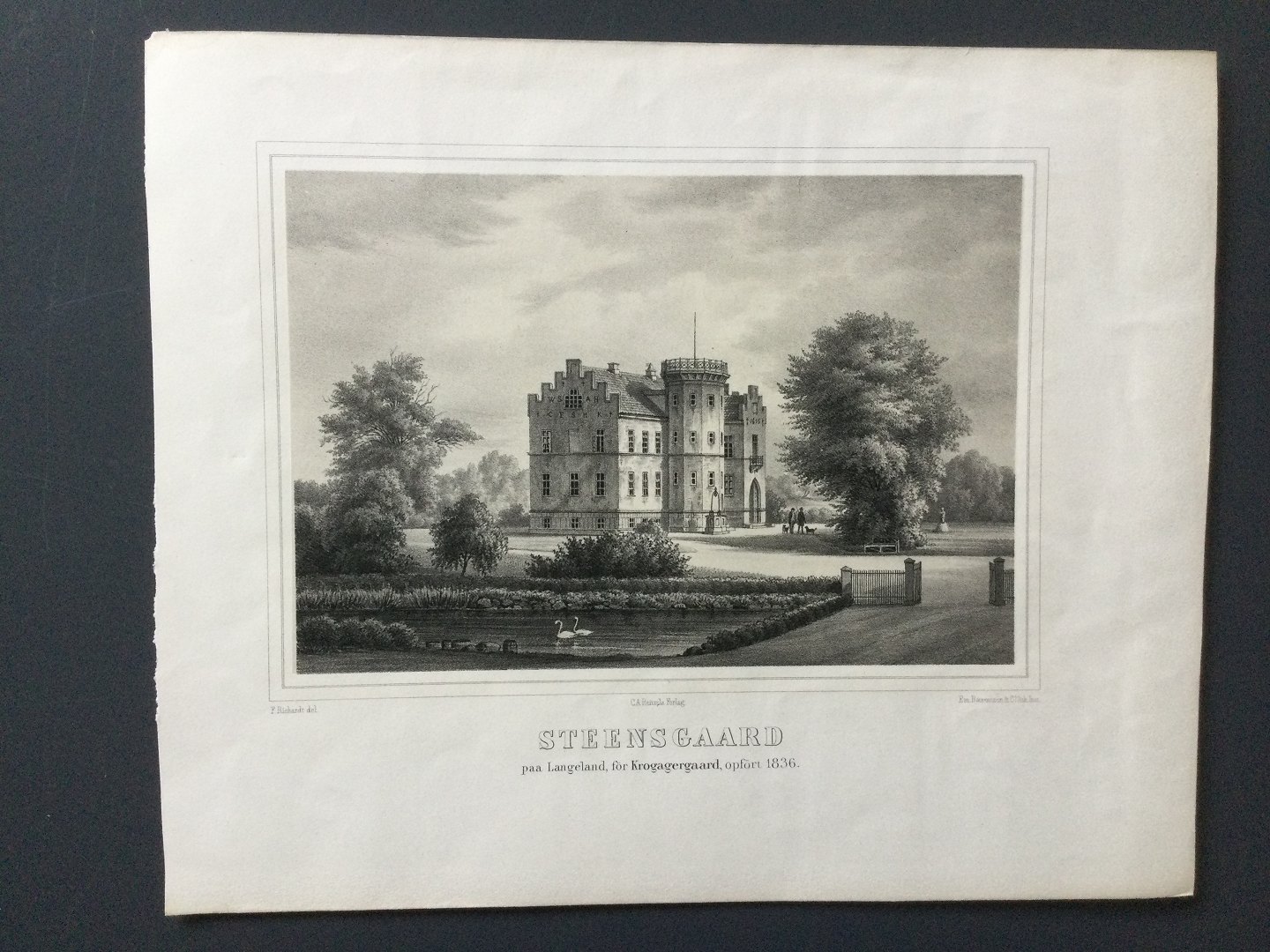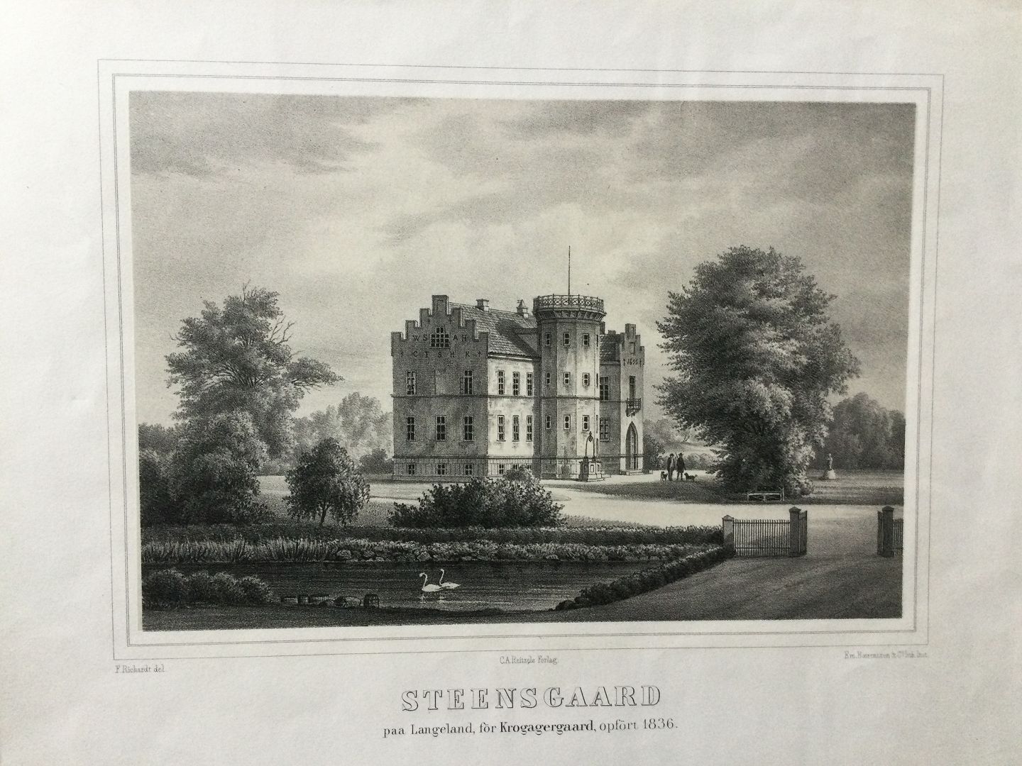 Betegnet - "Steensgaard paa Langeland, för Kroagergaard, opfört 1836"