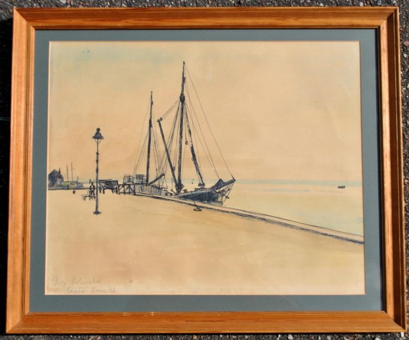 Holmskov, Helge (1912 - 1982) Danmark: Skibe i Løgstør Havn.