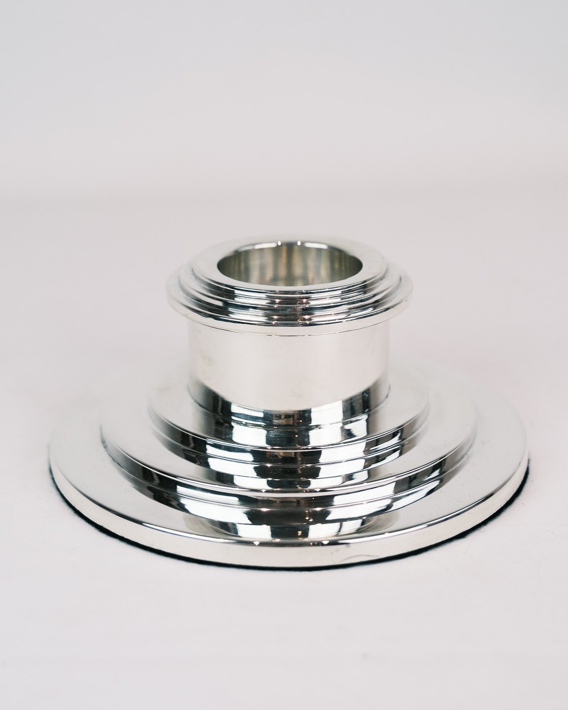 Sæt af 2 lysestager i ægte 830 sterling sølv fra 1940'erne, i Art Deco-stil. Disse stager kombinerer tidens karakteristiske design med høj kvalitet og elegance.