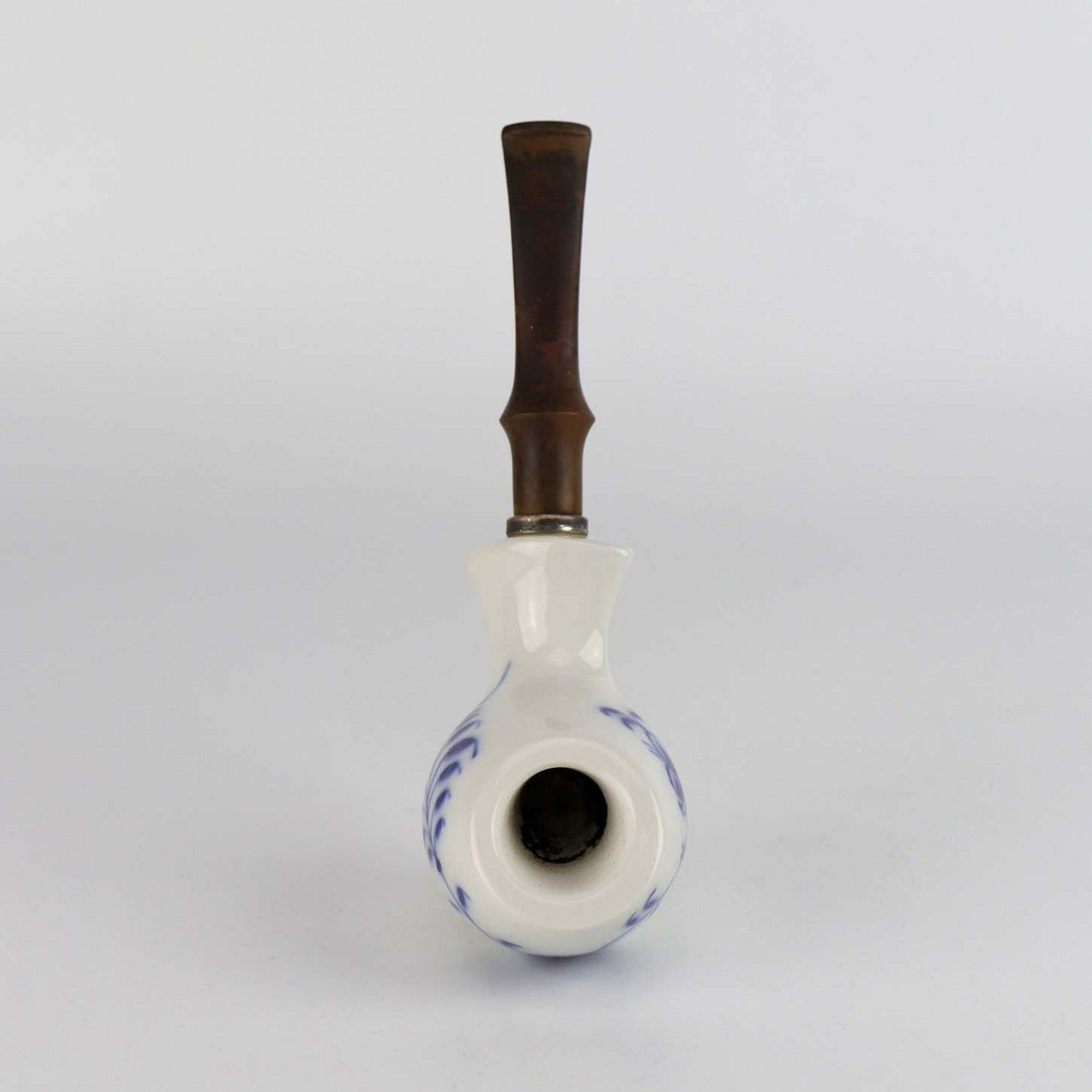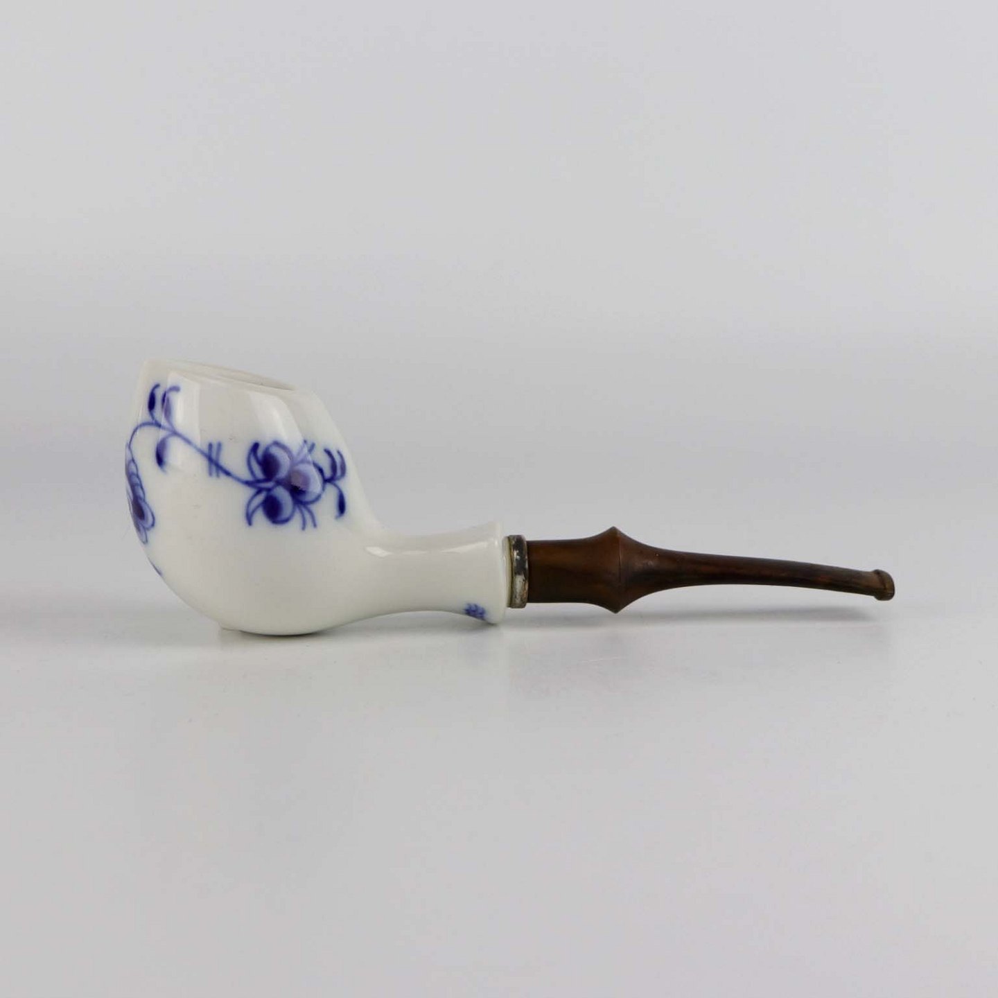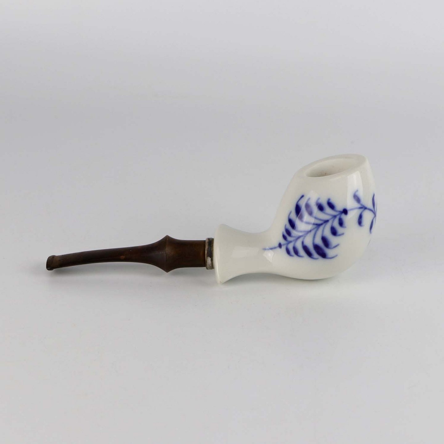 Pibe i glat hvidt porcelæn med blå musselmalet motiv