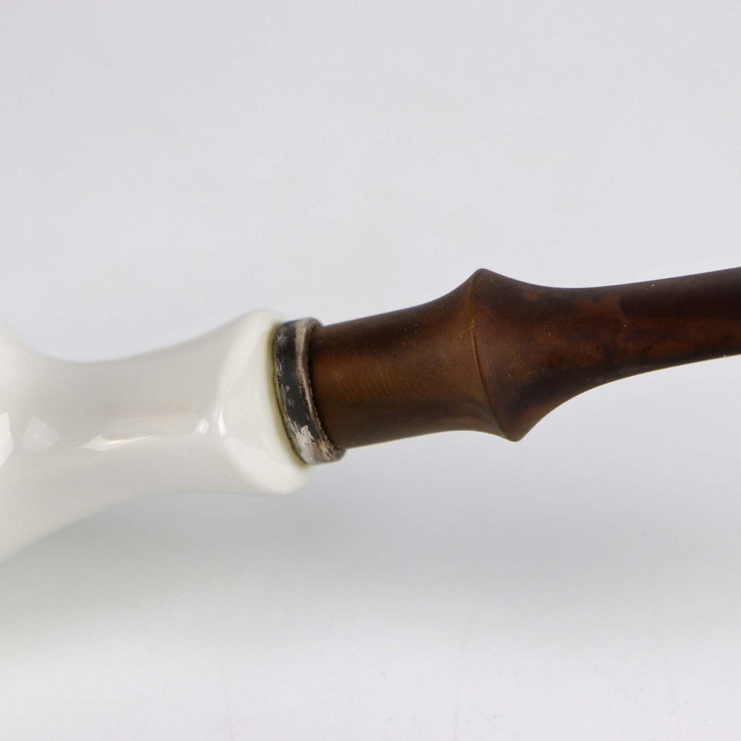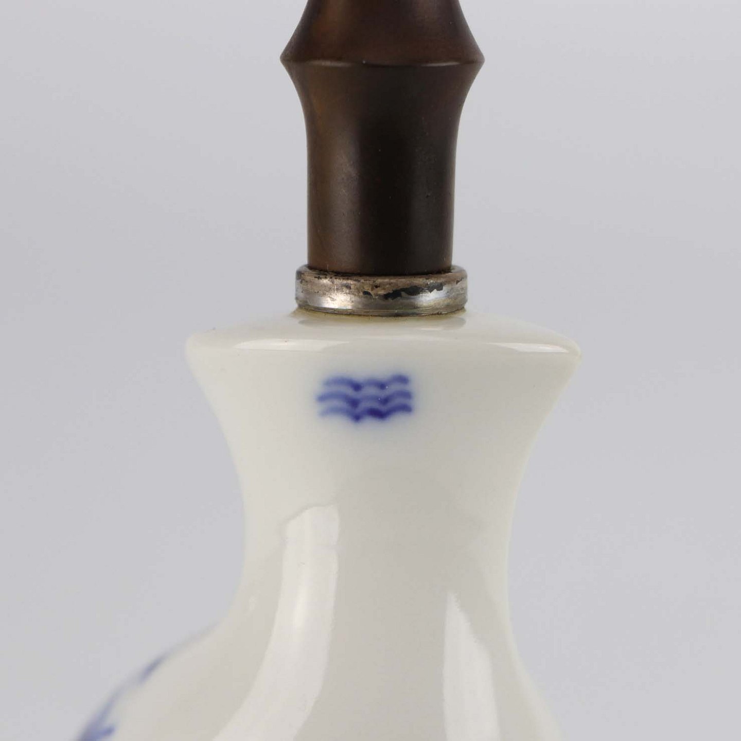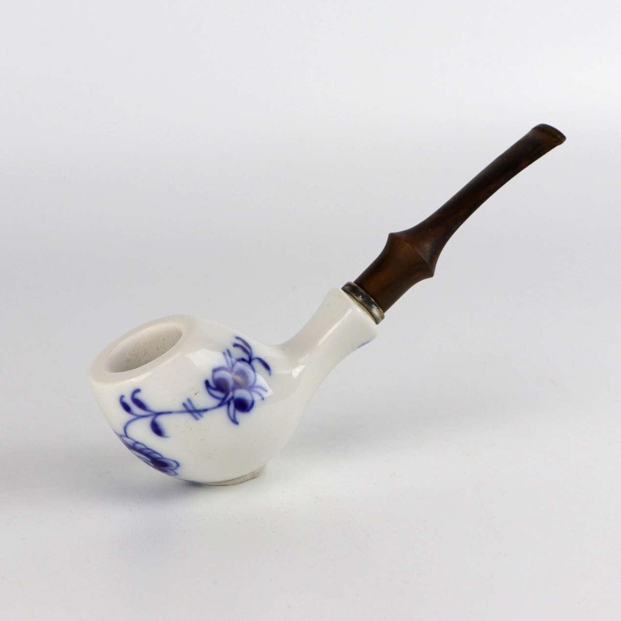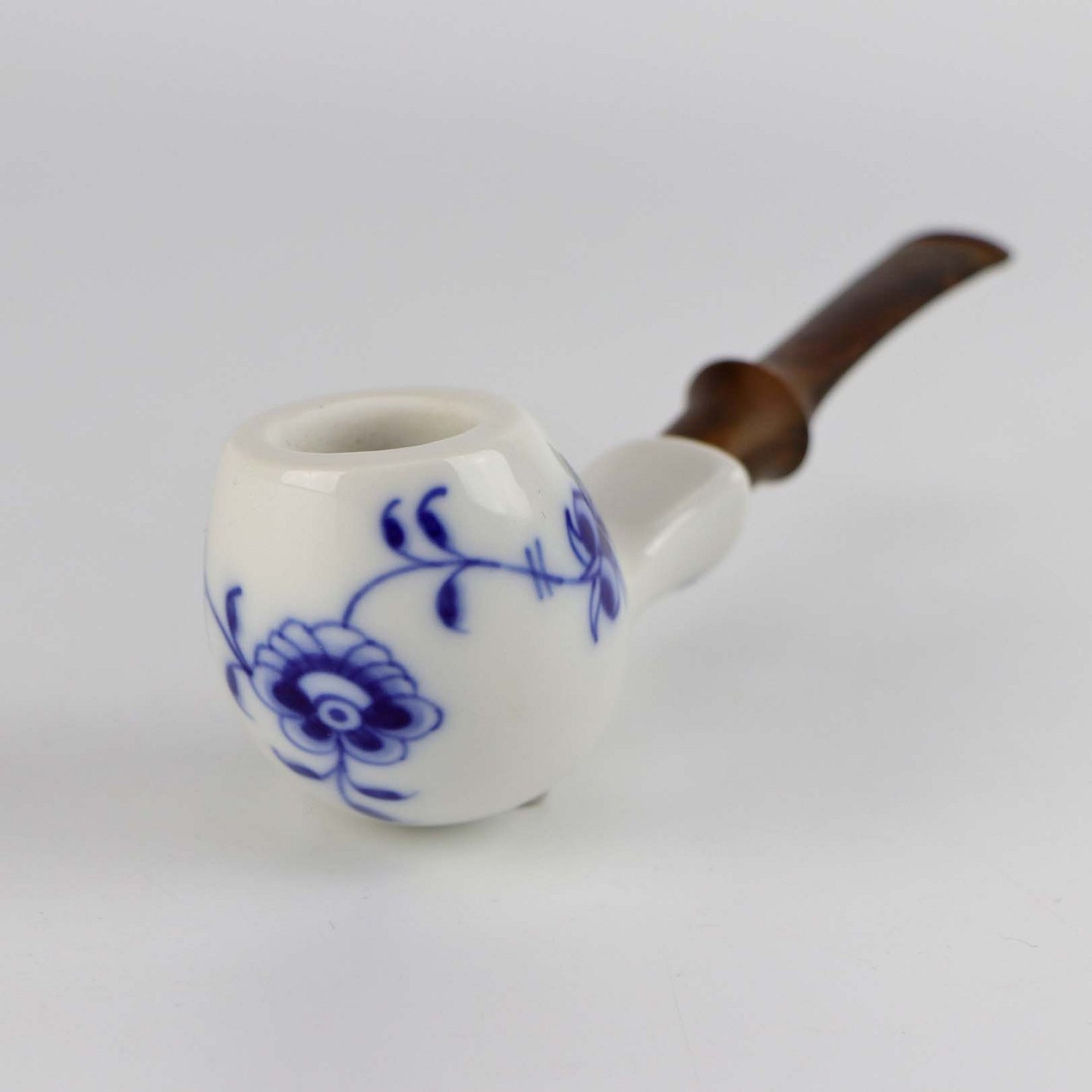 Pibe i glat hvidt porcelæn med blå musselmalet motiv
