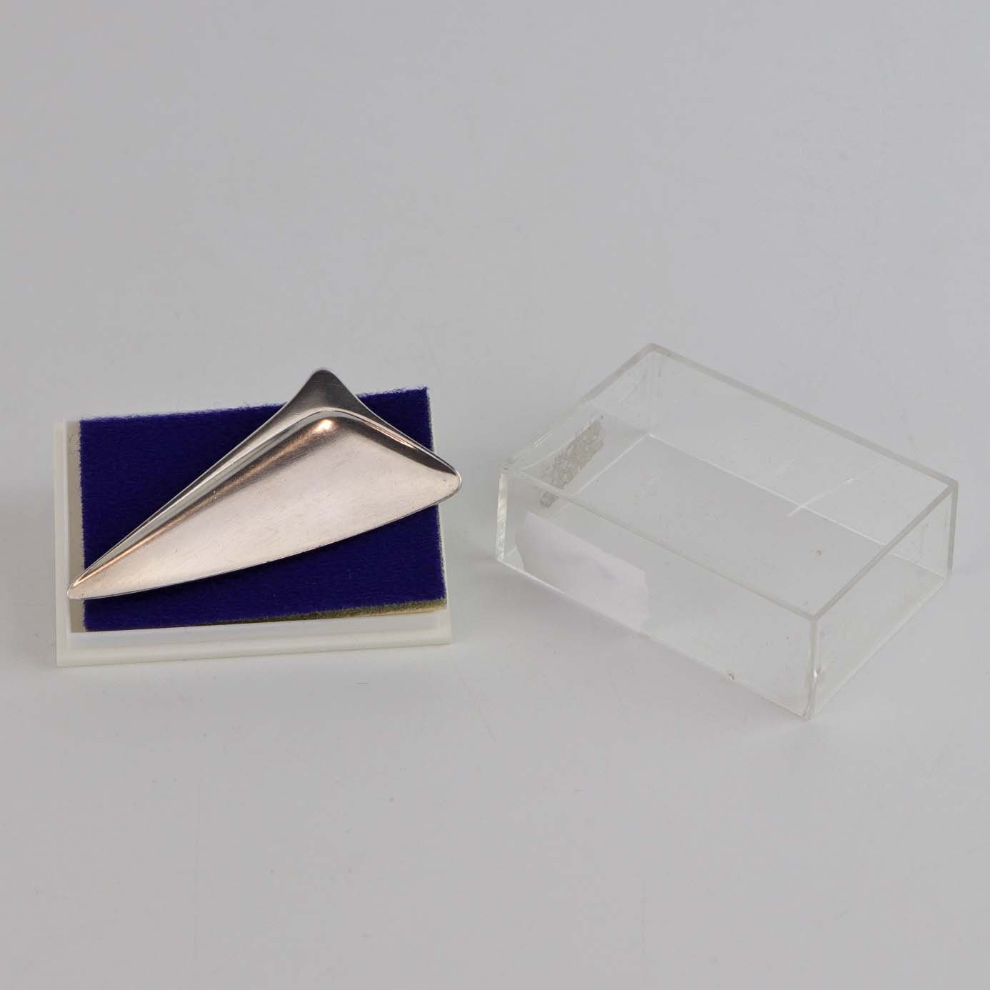 Broche nr. 327 i sterling sølv i minimalistisk trekantet form. Smykket kommer med æske i plast.