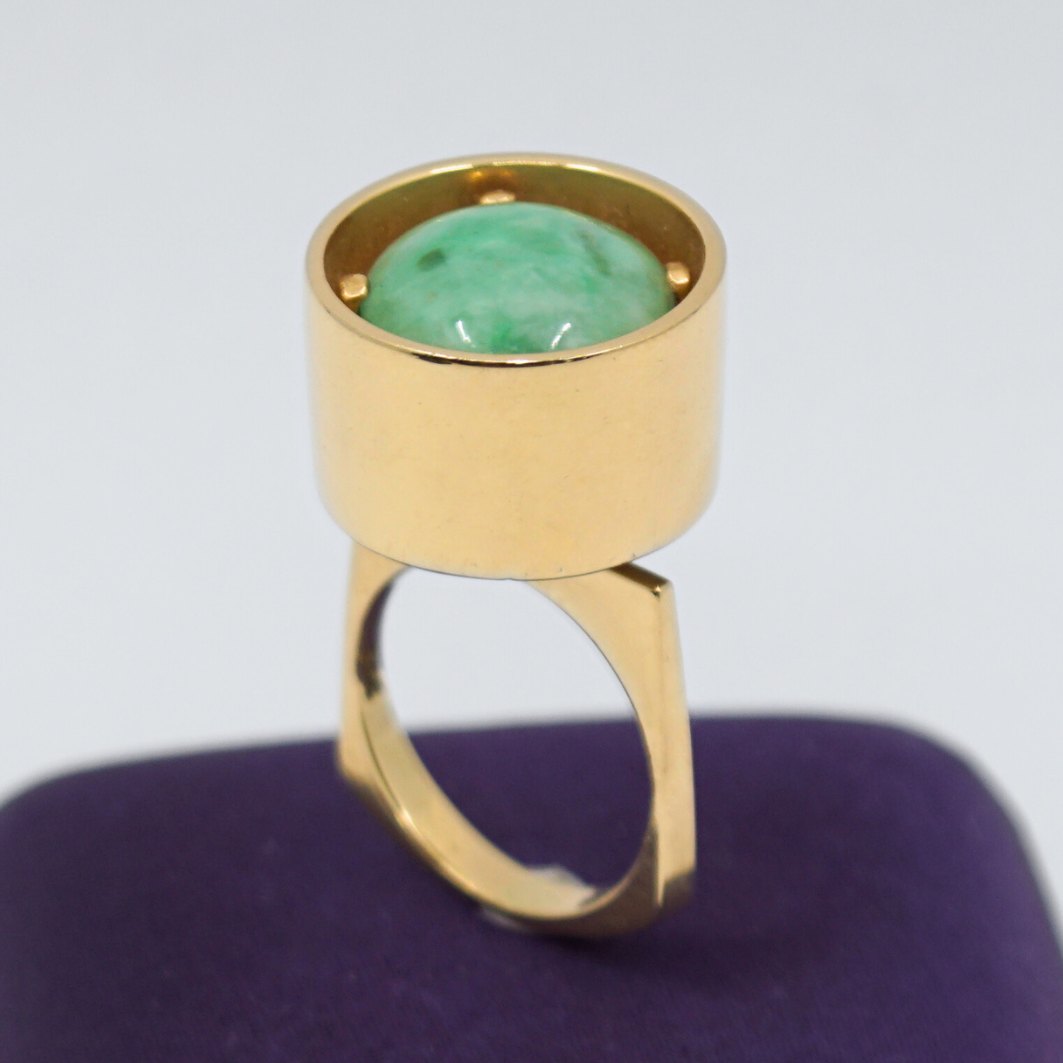 Flemming Lund; A 14 kt. gold ring with jade Ring size 52.