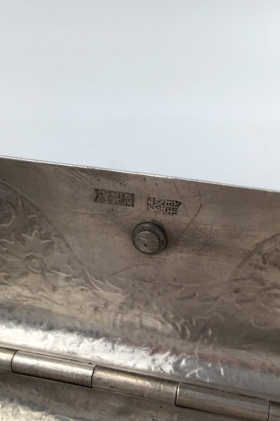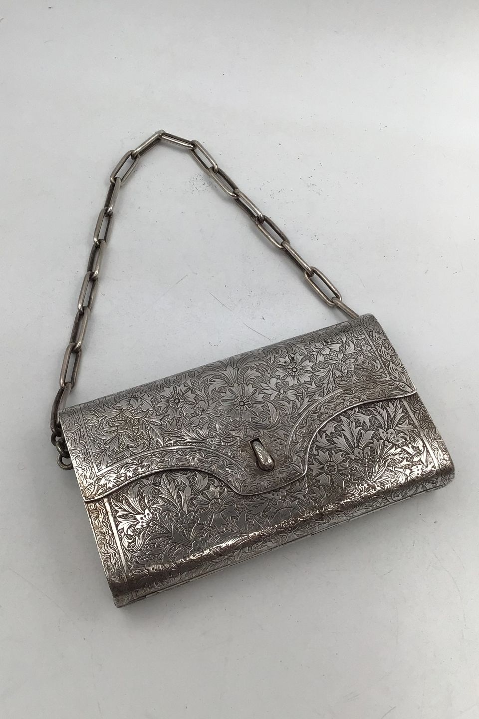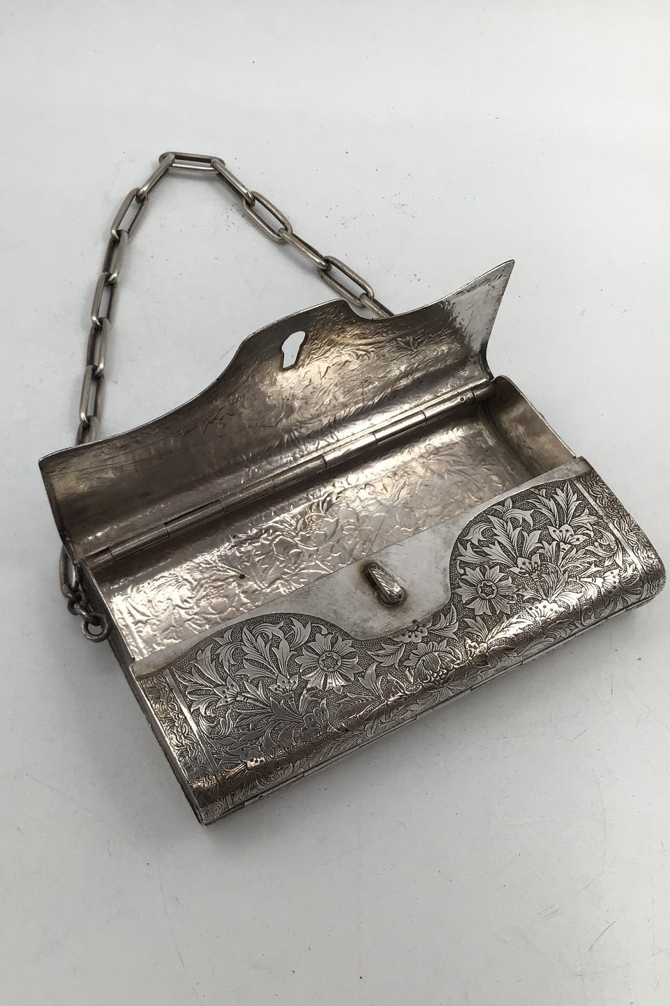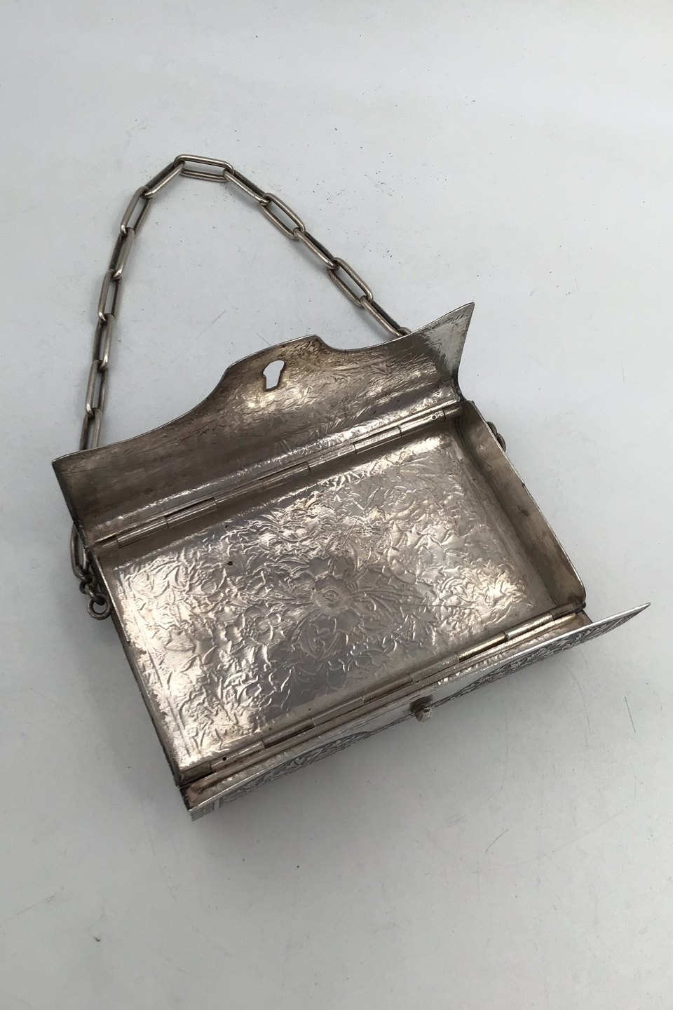 Asiatisk Sølv Taske Måler 12 cm x 7 cm x 2.2 cm (4.72 inch x 2.75 inch x 0.86 inch) Lænke 31 cm (12.20 inch) Vægt 216.9 gr (7.65 oz)