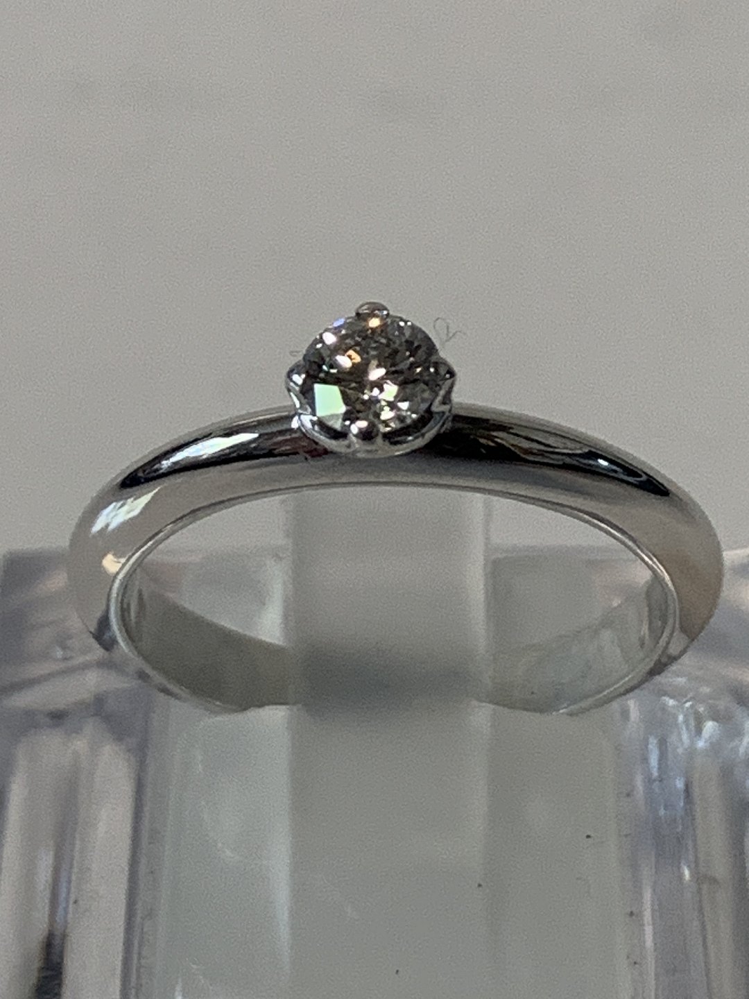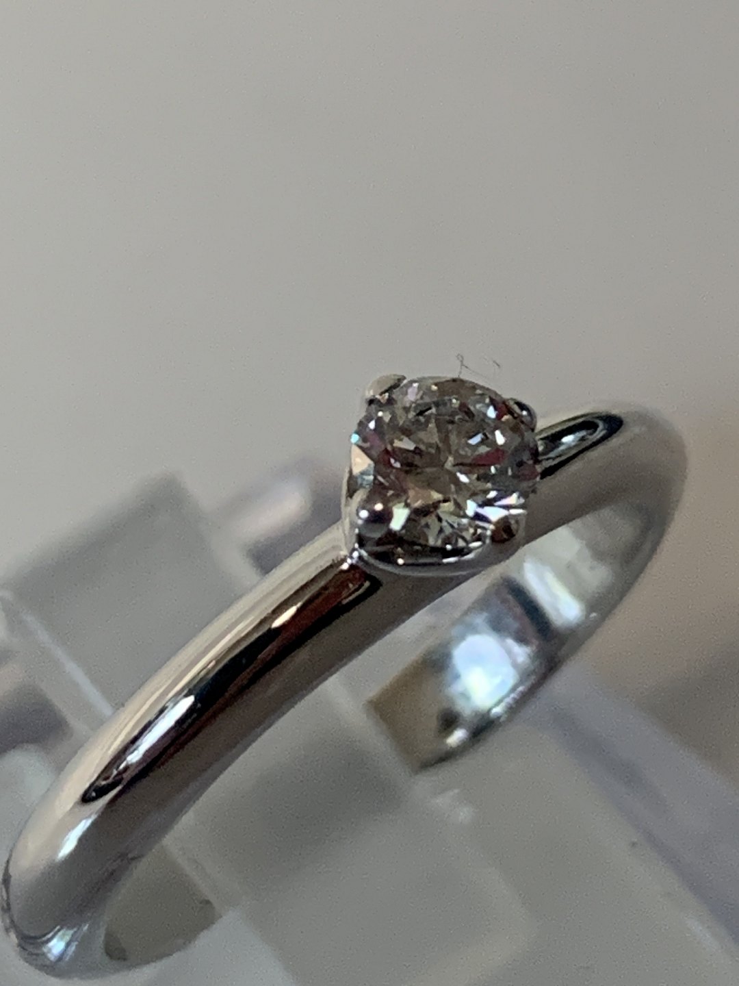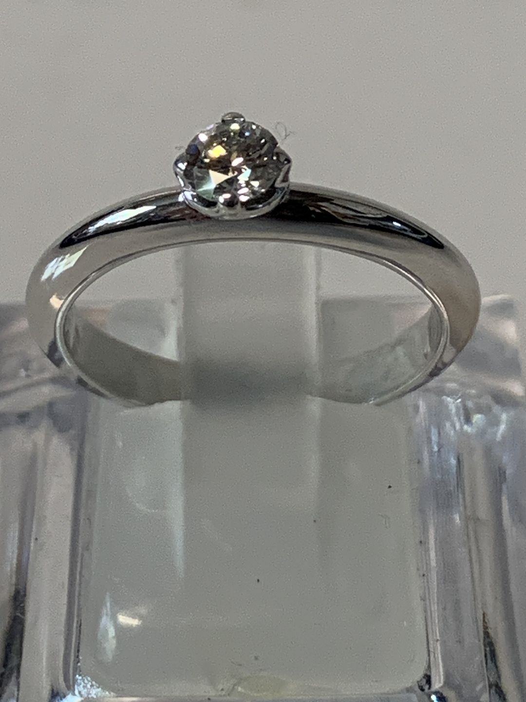 Beautiful and simple ladies' ring in 18 carat white gold, with a diamond on top. The ring is simple in its structure, which gives a minimalist, stylish look. The ring can either be worn alone or in combination with other rings.