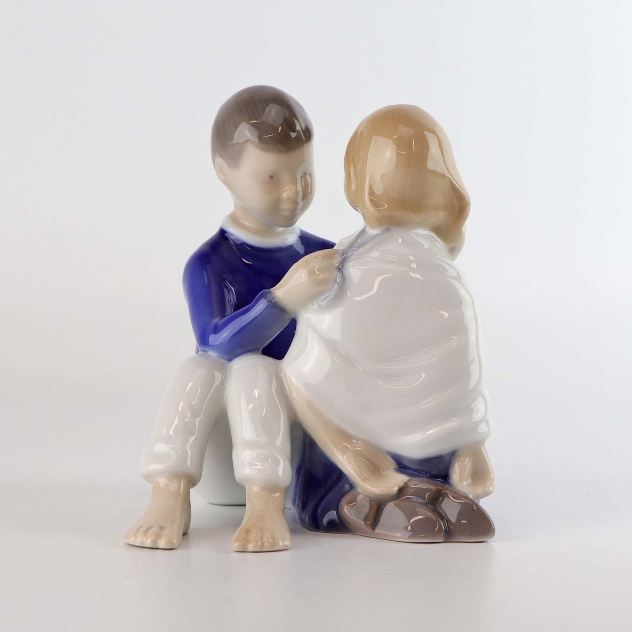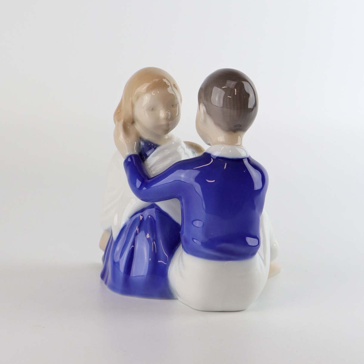 Figur i porcelæn med motiv af dreng og pige som leger frisør nr. 2367