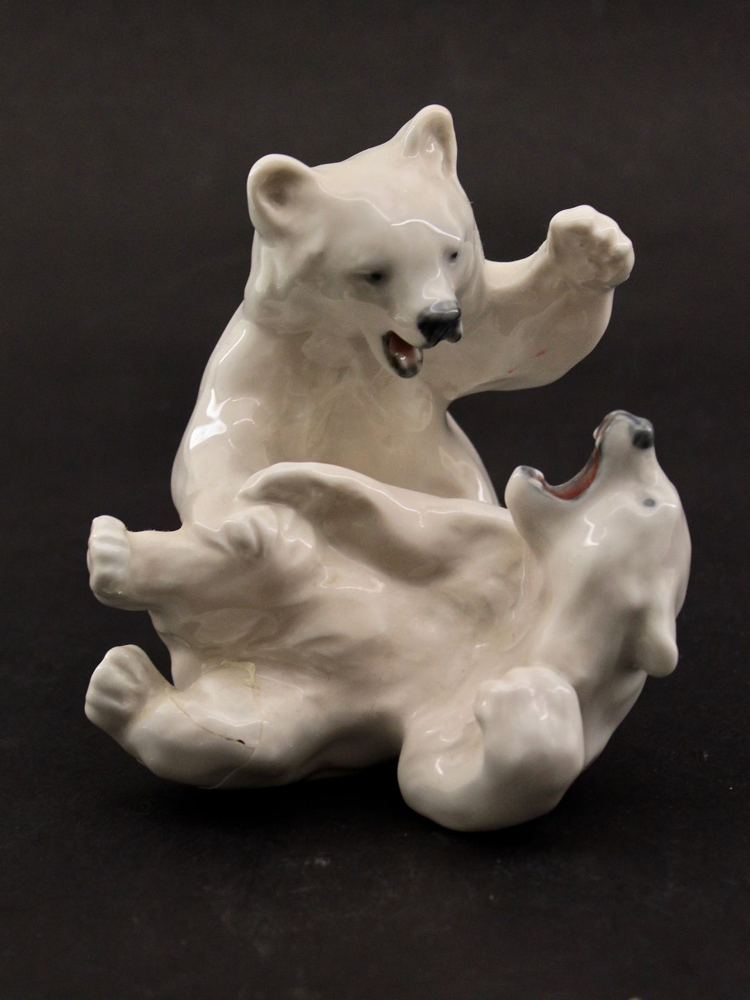 Royal Copenhagen figur nr. 1107 l. sortering legende bjørne designet af Knud Kyhn. Højde 13,5 cm. emne nr. 591892