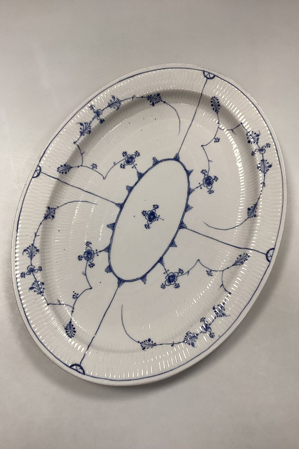 Royal Copenhagen Blue Fluted Plain Antique Dish. Slightly crooked at the edge and with small black burning sparks (see photo).