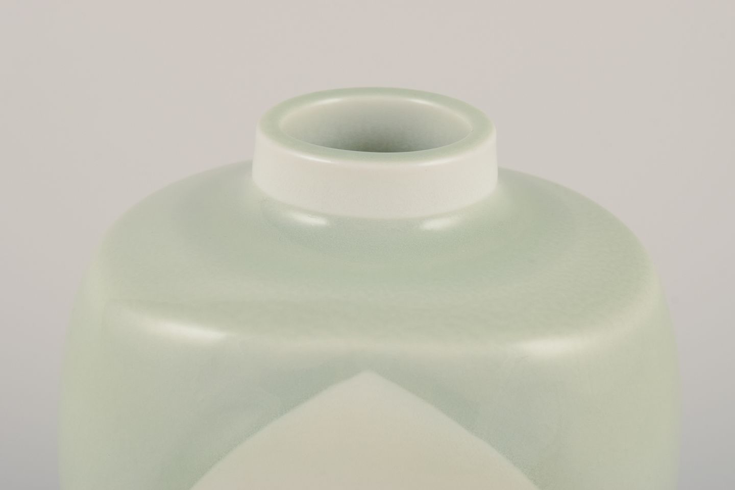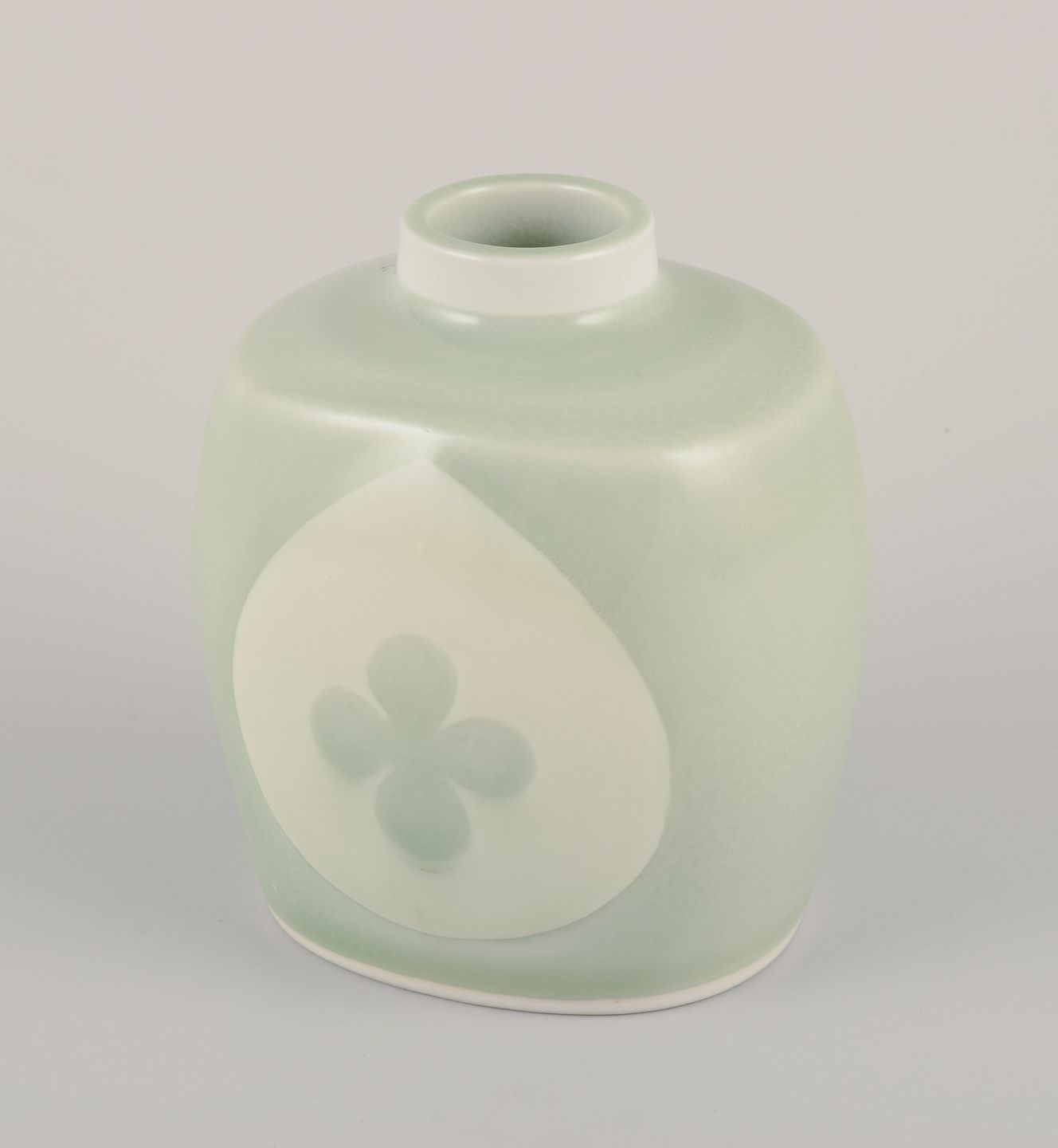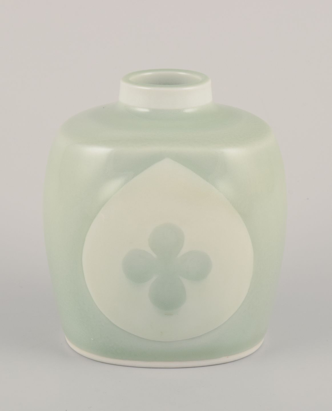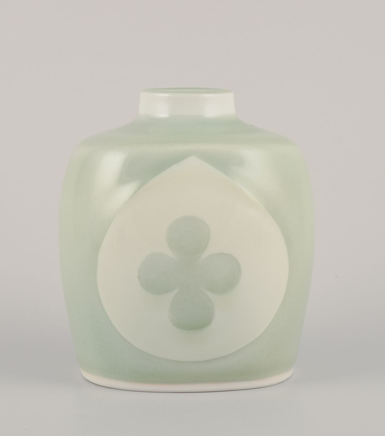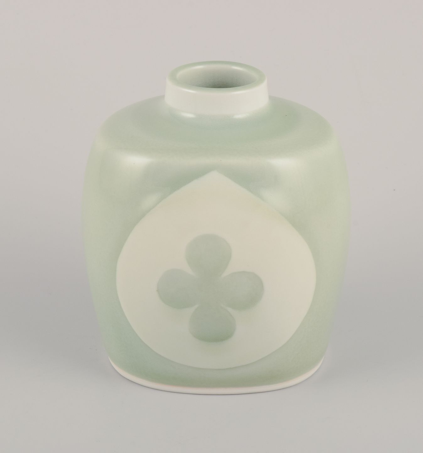 Rare ceramic vase in celadon glaze. Motif of a four-leaf clover.