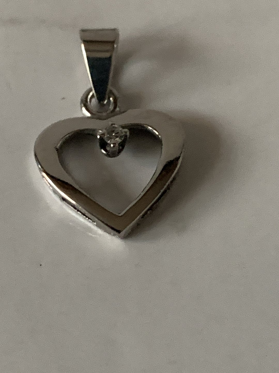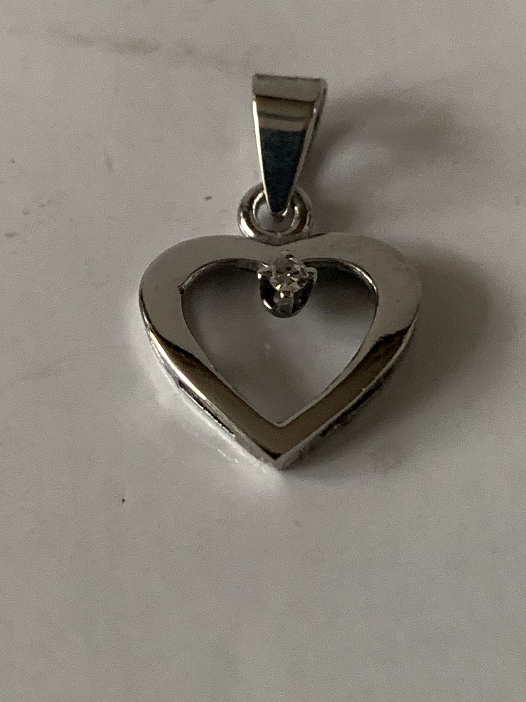 Flot og diskret vedhæng, udformet som Hjerte med en diamant i 14 karat hvidguld. Velegnet til halskæde, eller som vedhæng i armbånd. Smukt minimalistisk og klassisk smykke, der har været brugt i mange år.