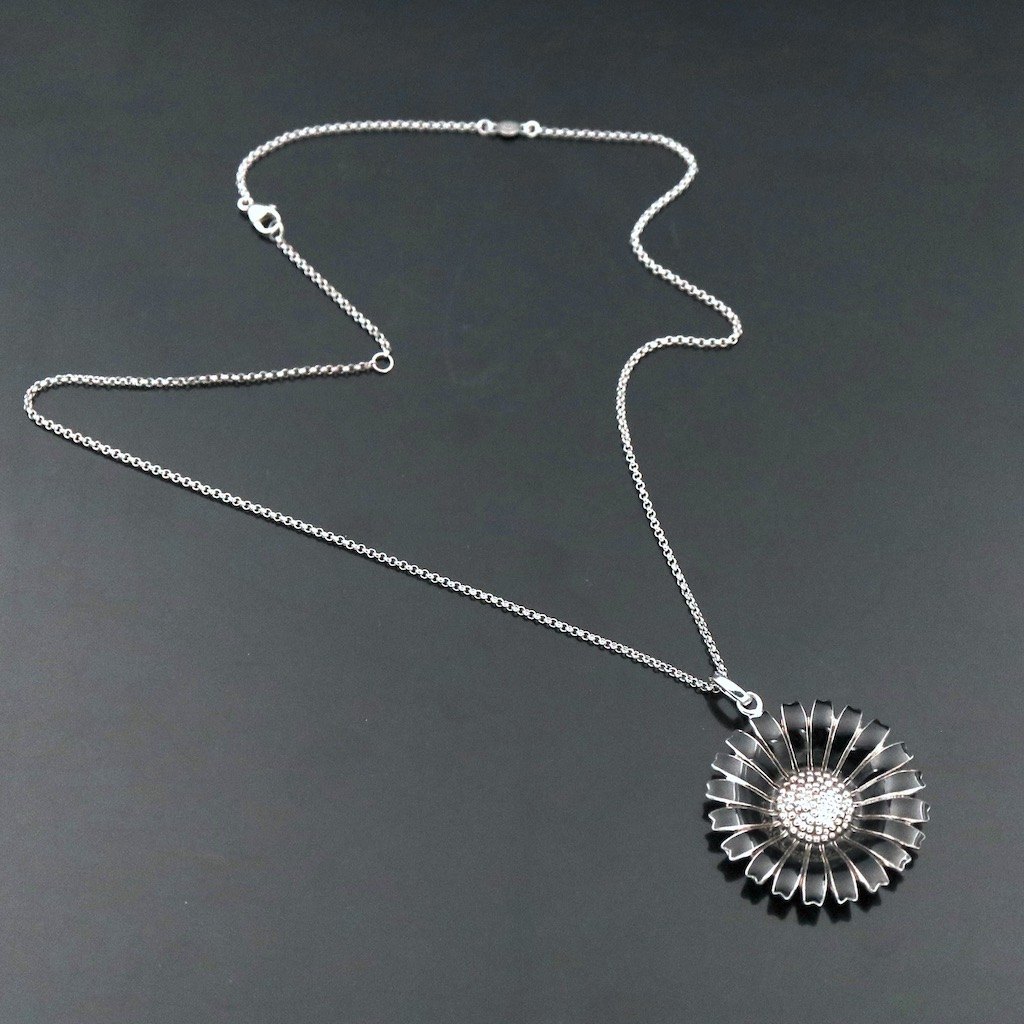 Georg Jensen Marguerit / Daisy vedhæng i sterlingsølv med sort emalje - 33mm.