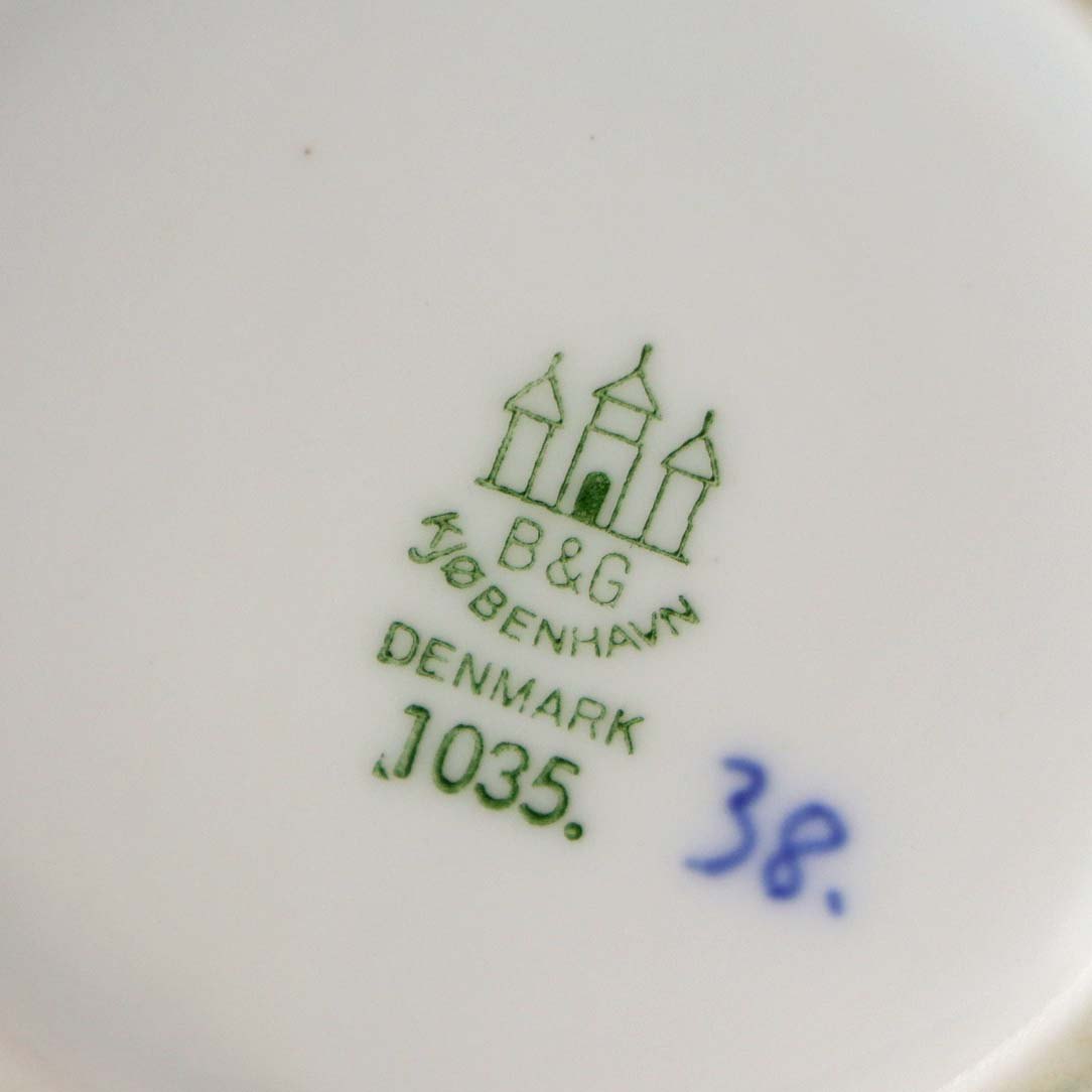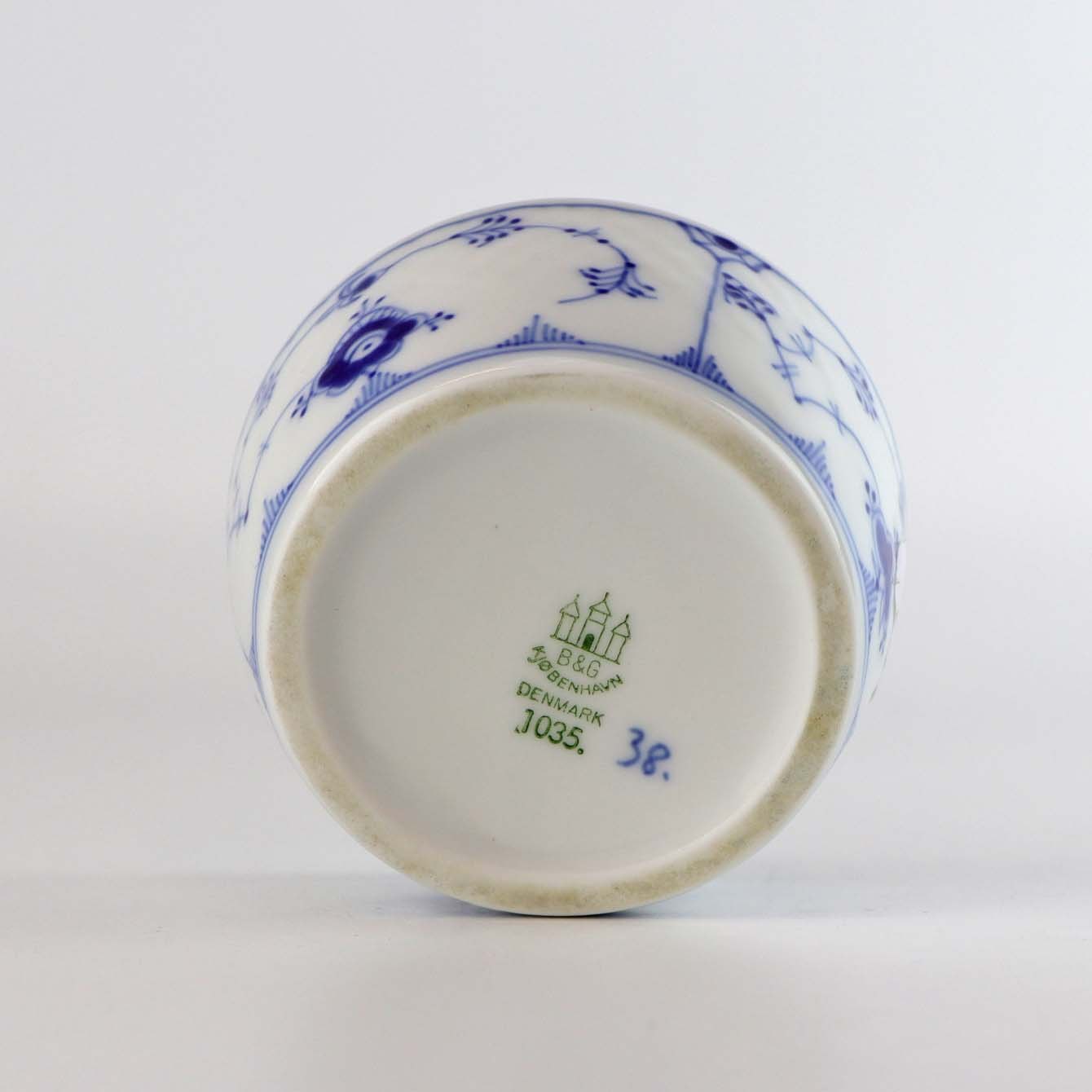Text available in Danish: Lille skål til sukker i hotelporcelæn fra stellet Blåmalet. Nr. 1035