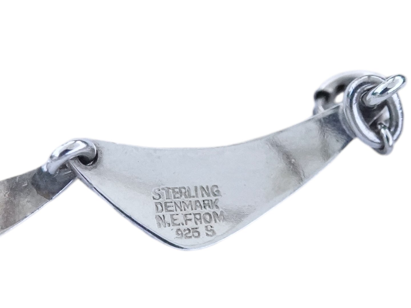 Stemplet "N.E. FROM 925S". N.E. From var sølvsmed i Randers og Nakskov fra 1944 til 2009 og er kendt for at have lavet smykker i høj kvalitet.