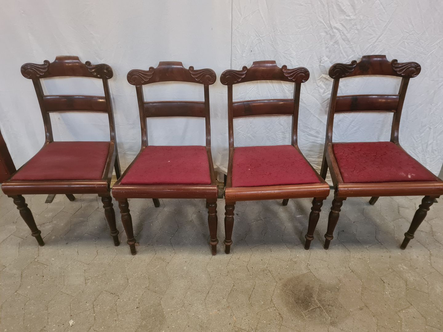 4 Stole i mahogni og bøgetræ, fra 1900erne.