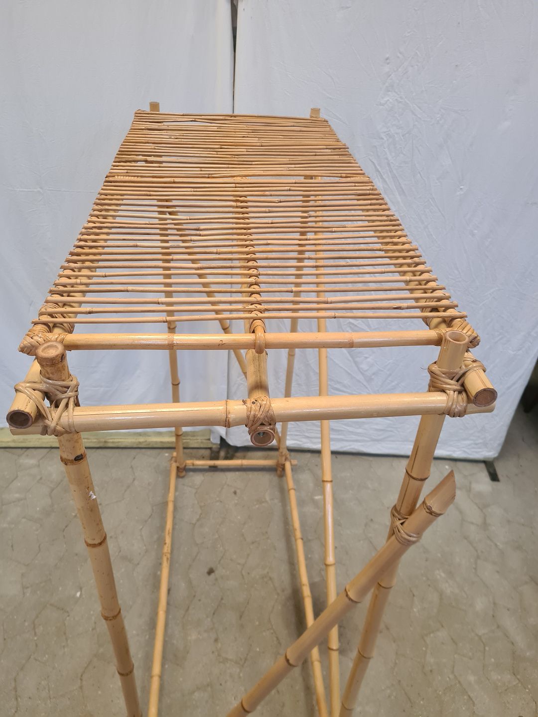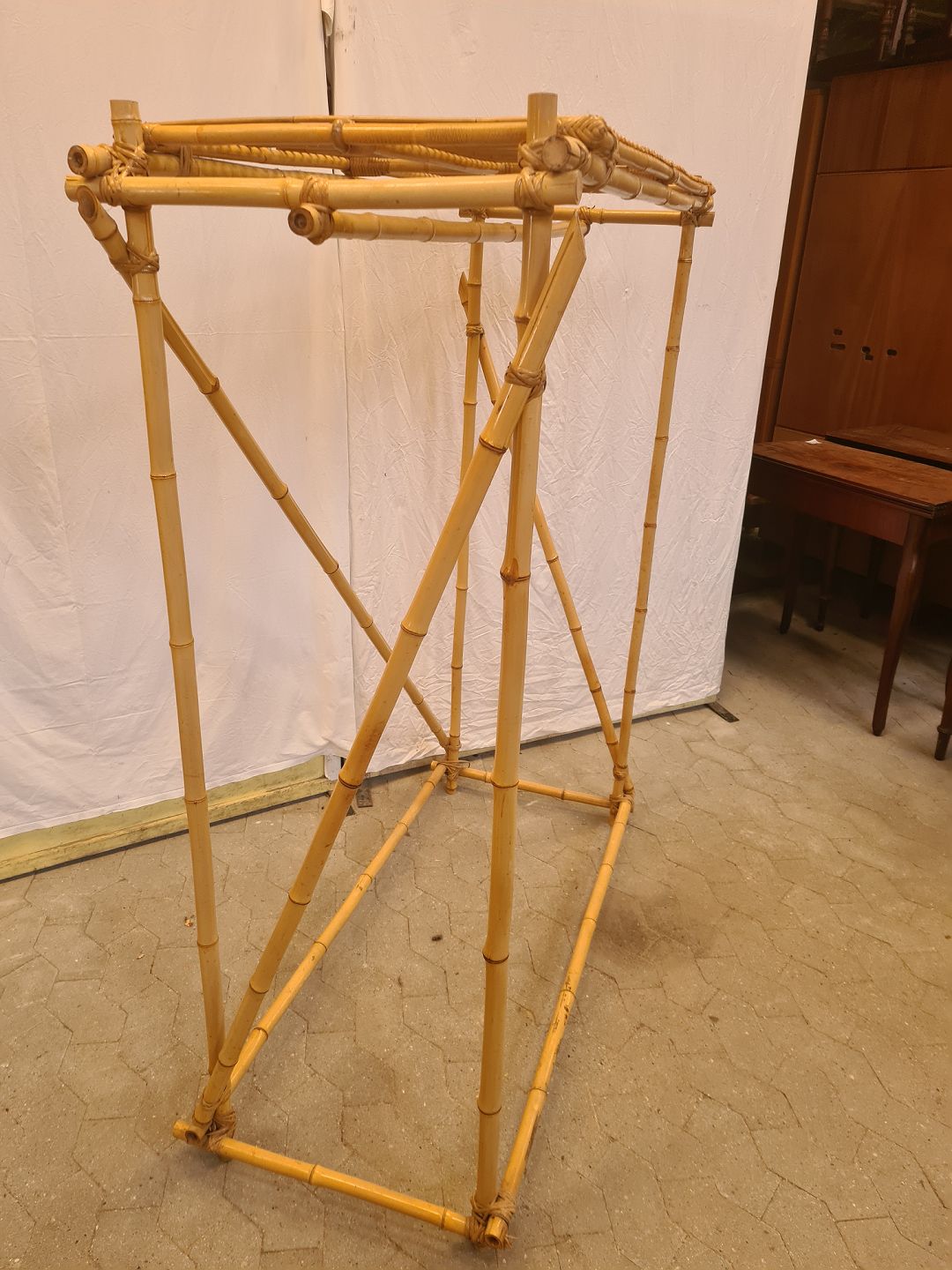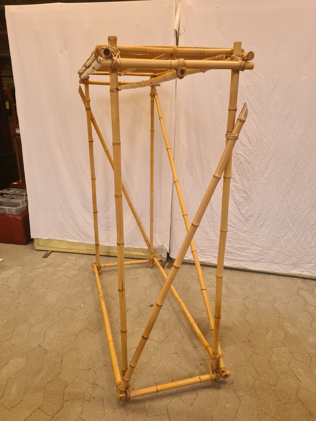 Tøjstativ i bambus til tøjbøjler og med hattehylde, fra 1990erne.