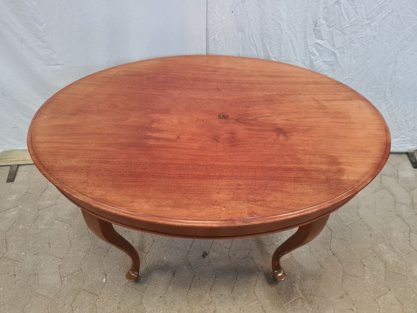 Ovalt salonbord i massivt mahogni og bøgetræ, fra 1910erne.