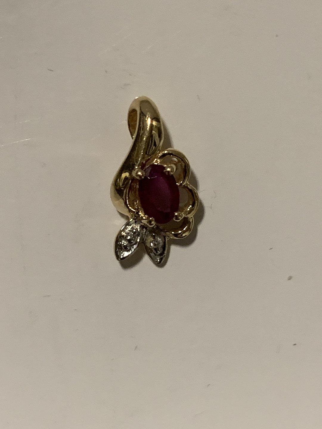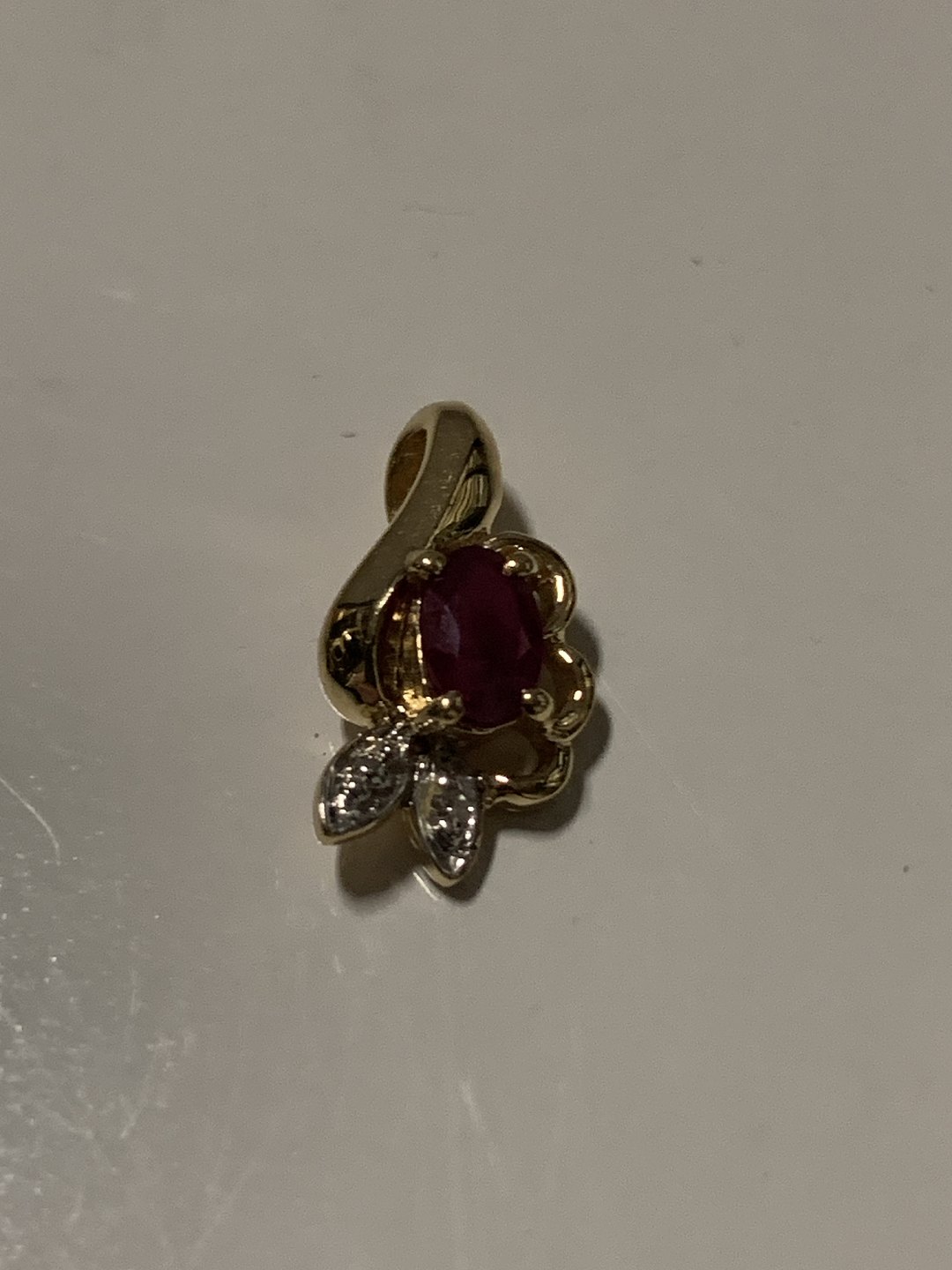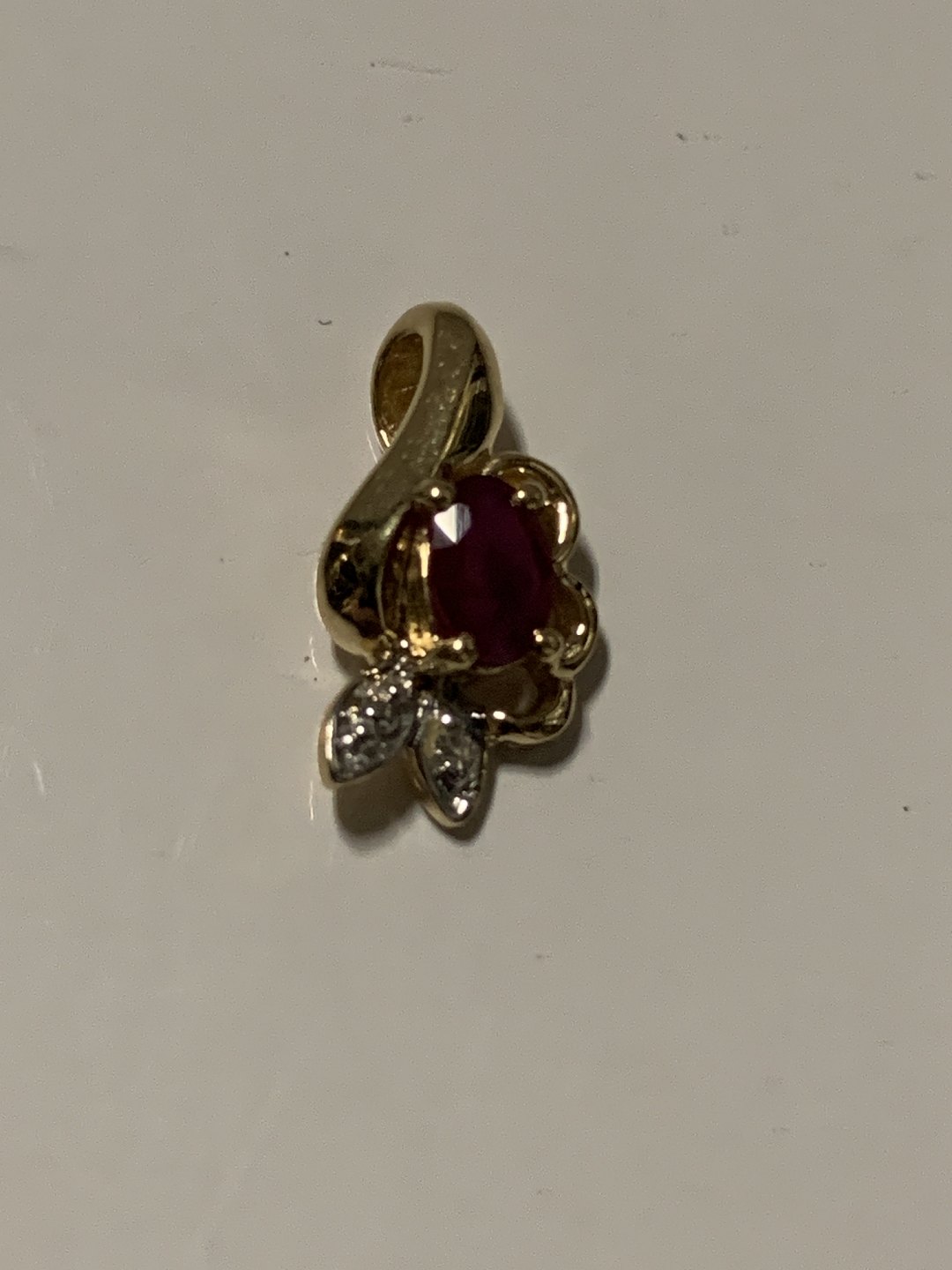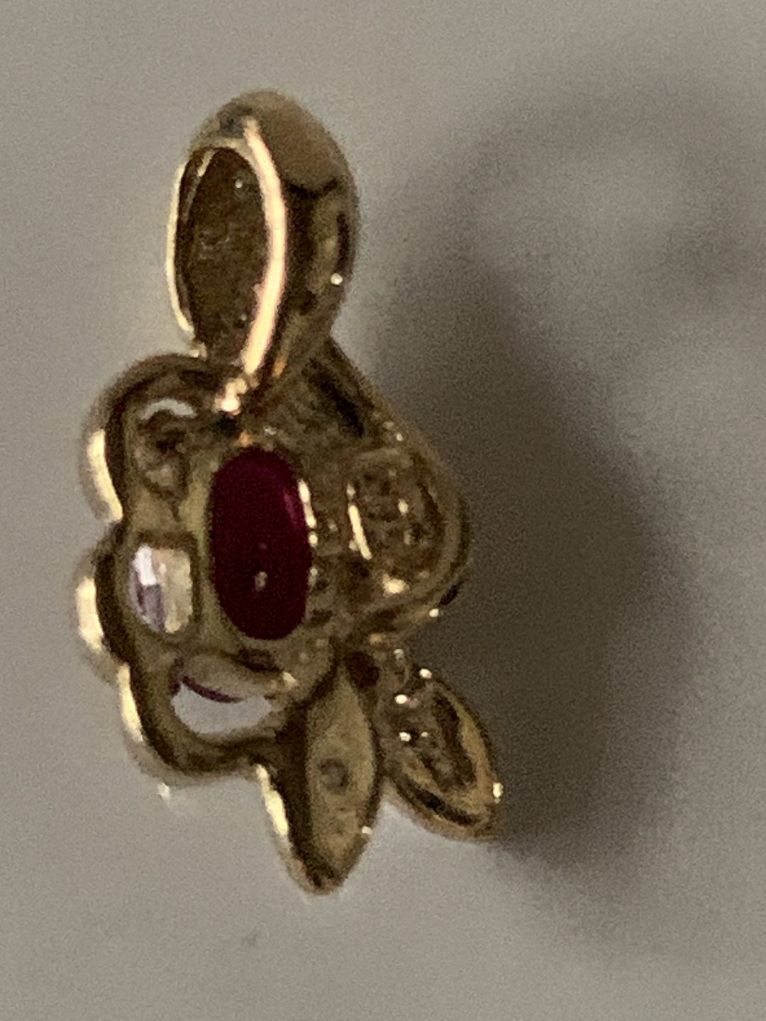 Vedhæng 14 karat guld, med en rød rubin samt indlagte Diamanter.