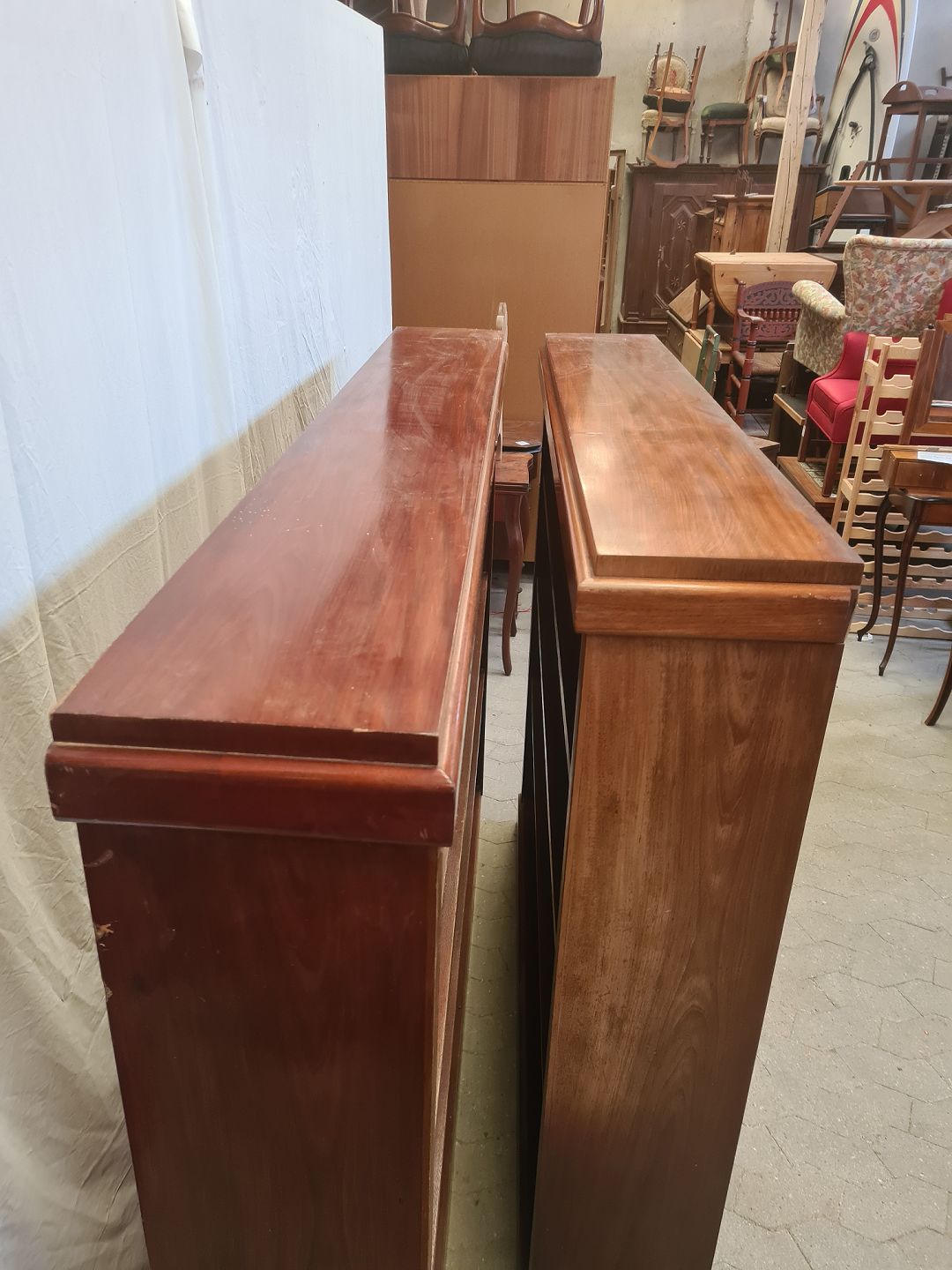 2 Reoler i fineret mahogni, fra 1920erne.