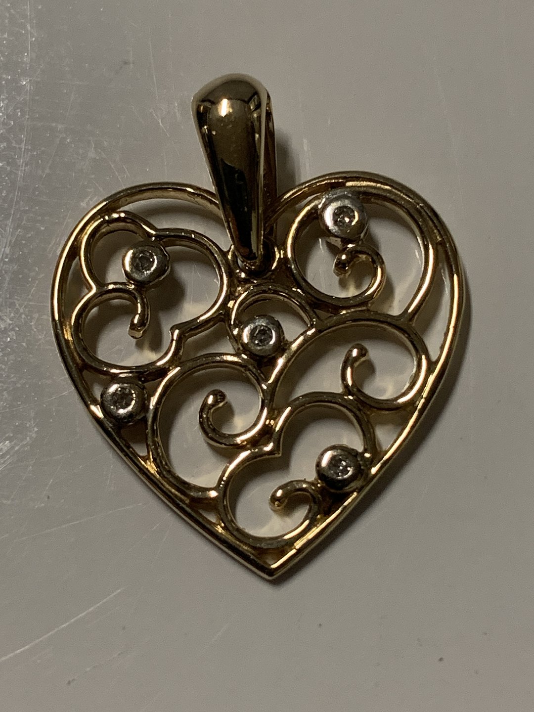 Flot vedhæng, udformet som Hjerte med indlagt Diamanter, i 14 karat guld. Velegnet til halskæde, eller som vedhæng i armbånd.