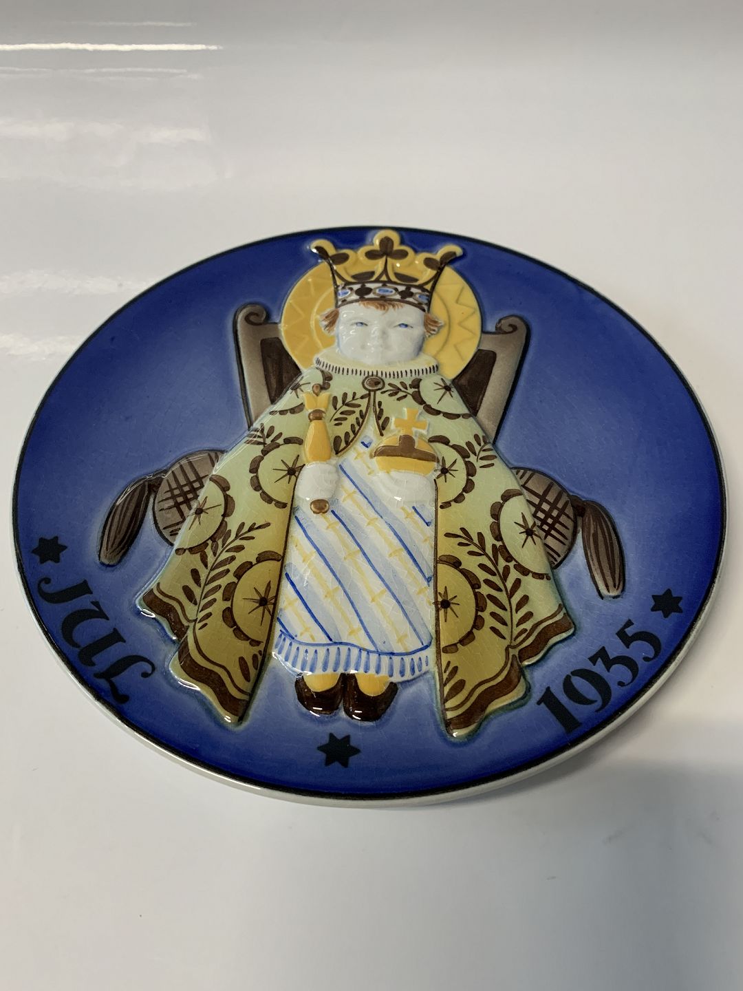 Aluminia juleplatte fra 1935 med motiv i relief.