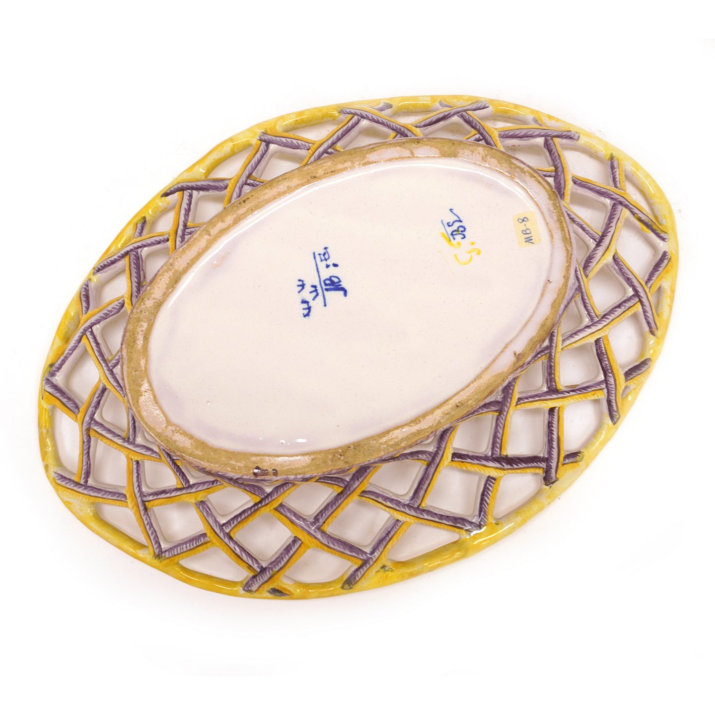 18th century Swedish faience fruit basket signed Marieberg 1764-68. H: 7cm. L: 29cm
