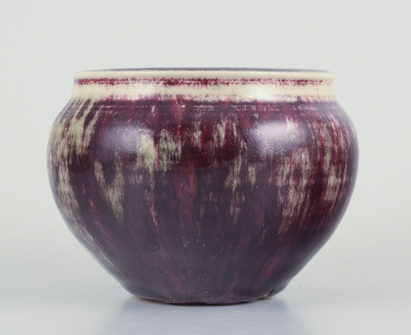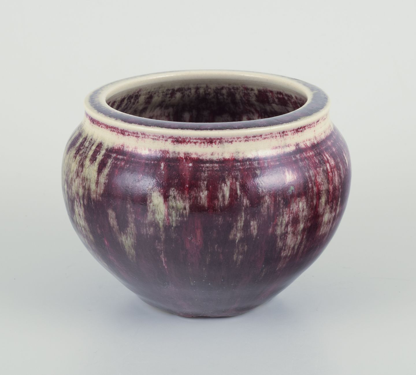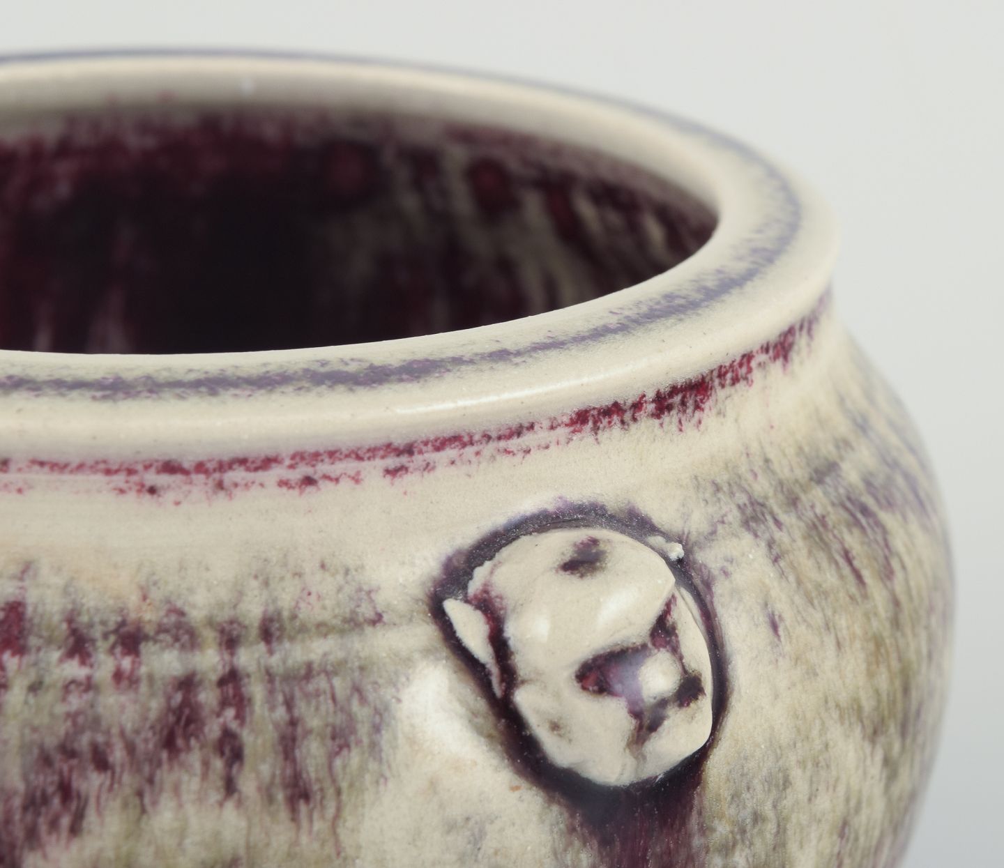 Glasur i violette og sandfarvede toner.
