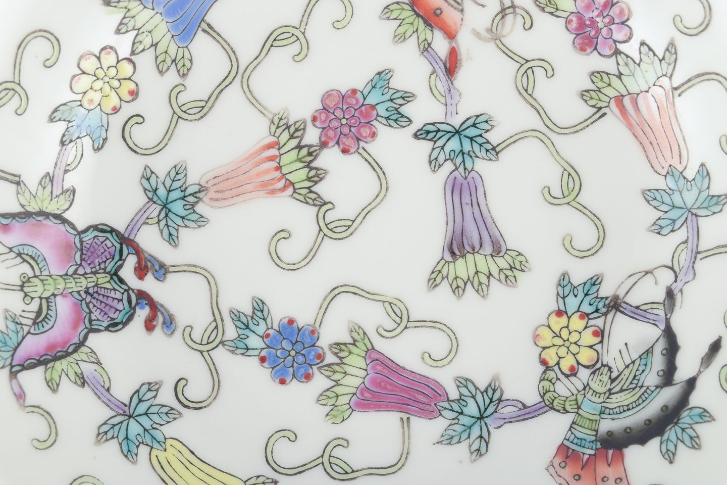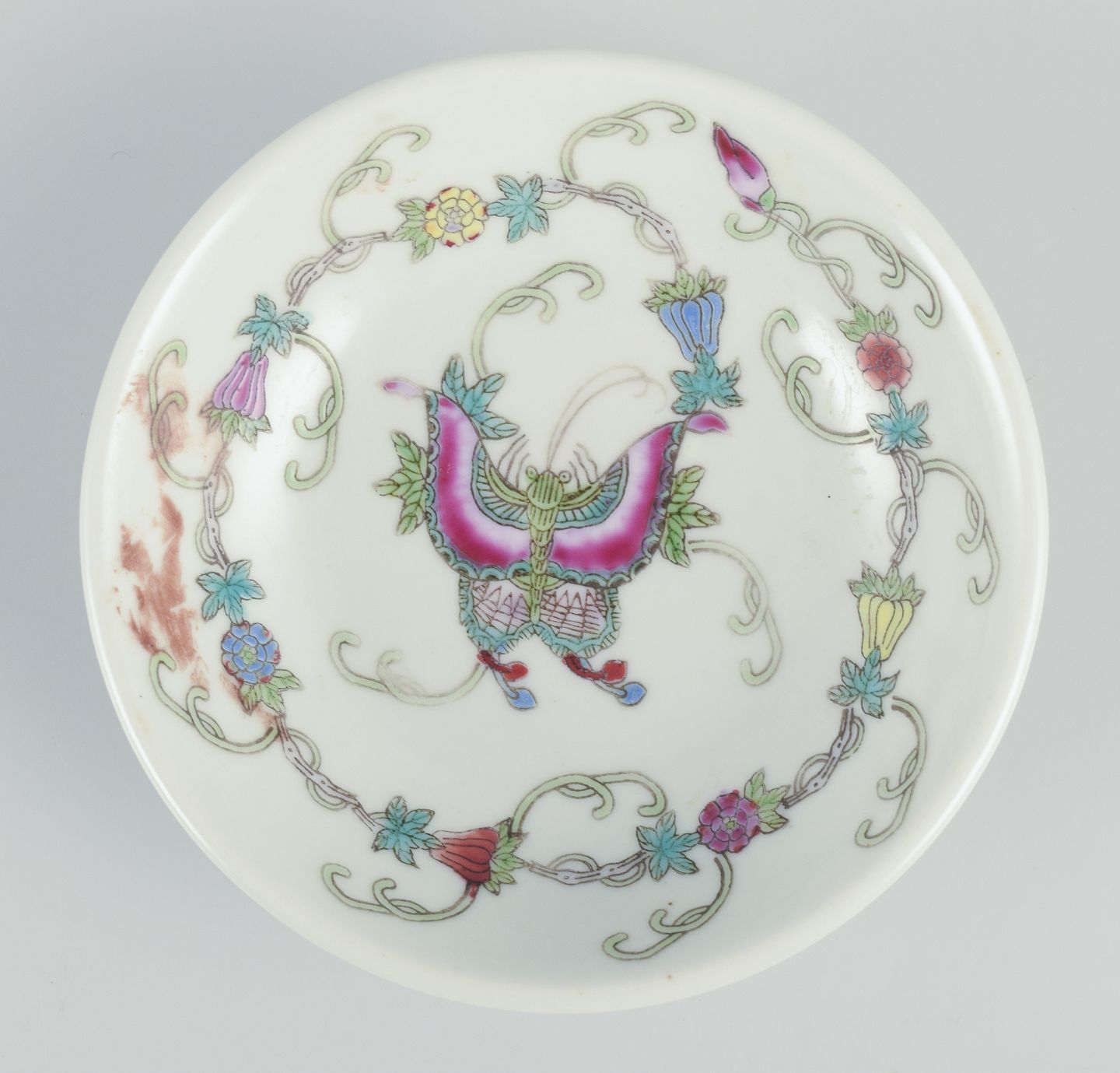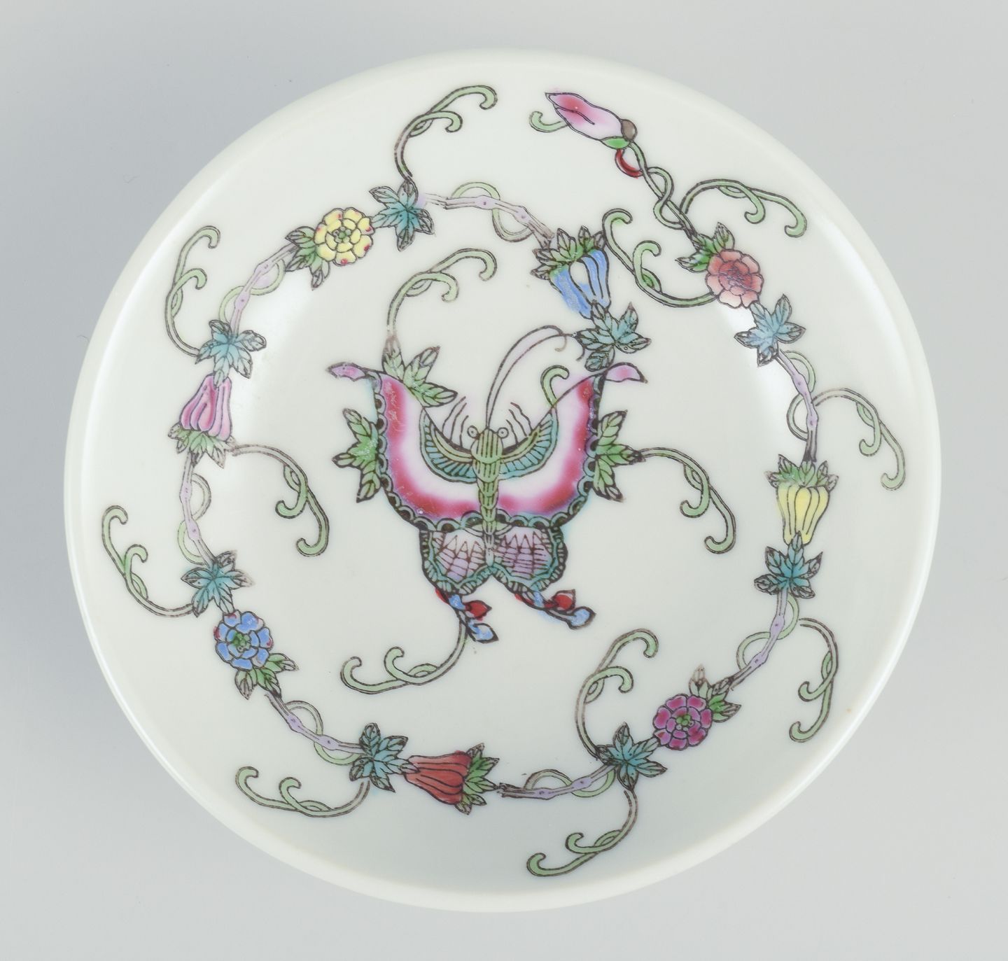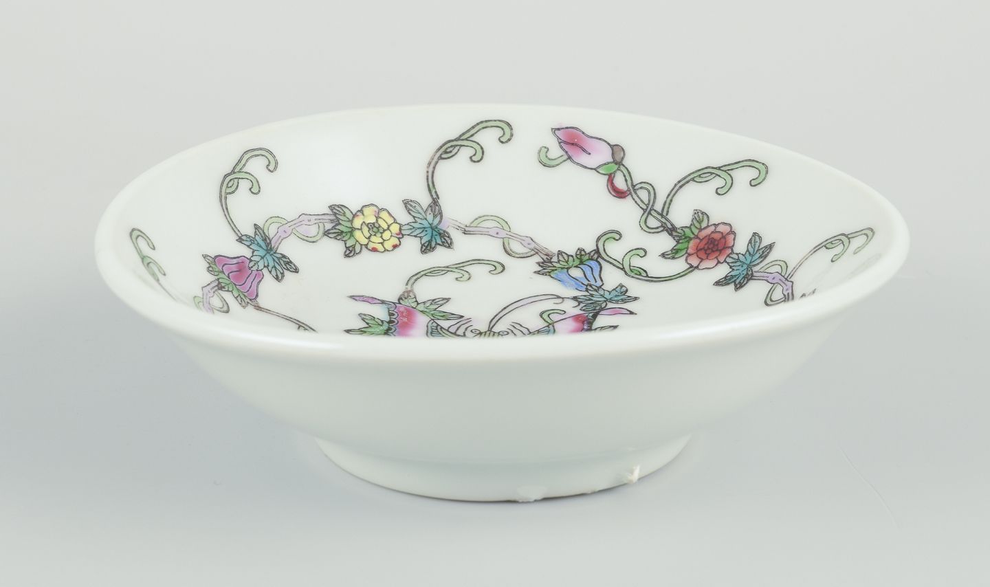 China, three porcelain bowls. Classic motifs with flowers and butterflies.