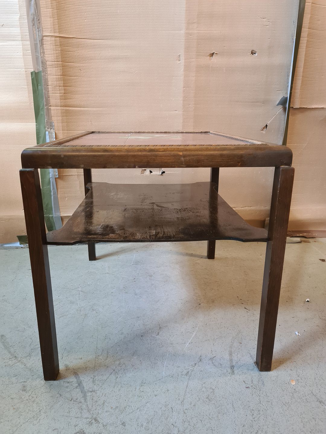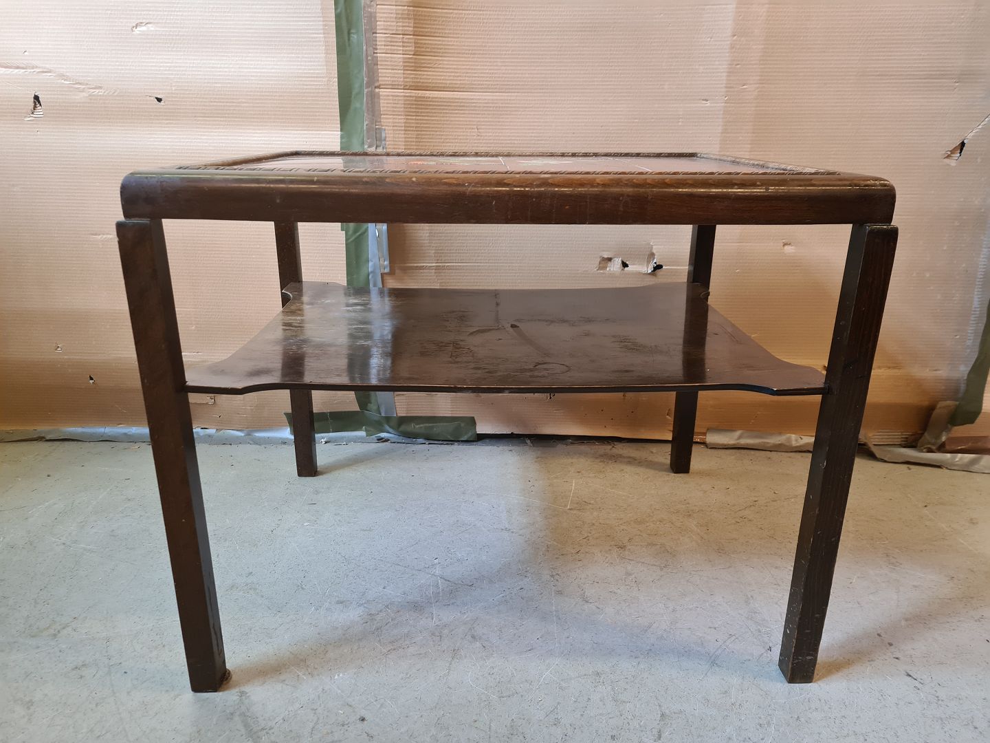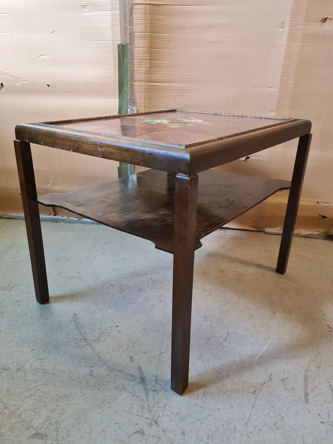 Sofabord i birketræ med kakler, fra 1930erne.