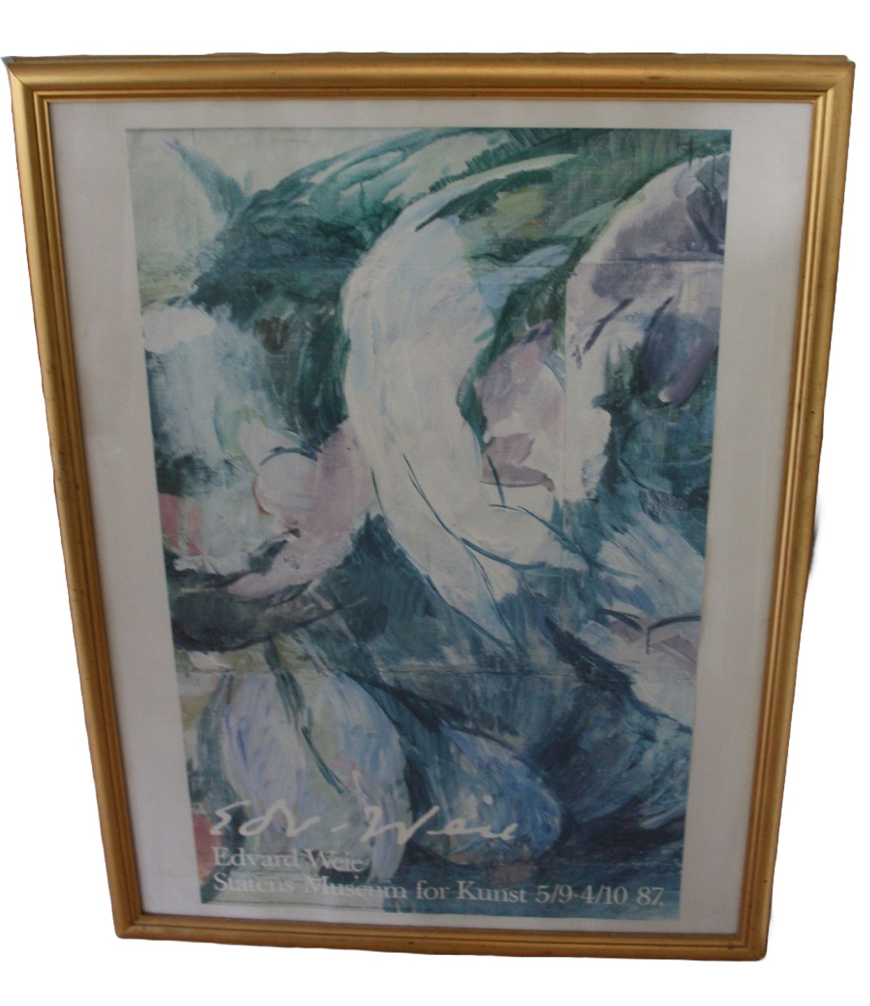 Edvard Weie, Udkast til Poseidonbilledet 1920. Kunstplakat i guldramme fra Art Frame. Fra udstilling 5/9 - 4/10 87 på Statens Museum for Kunst. Højde 113 cm. Bredde 86 cm. Fin stand. Pris: 800 kr.