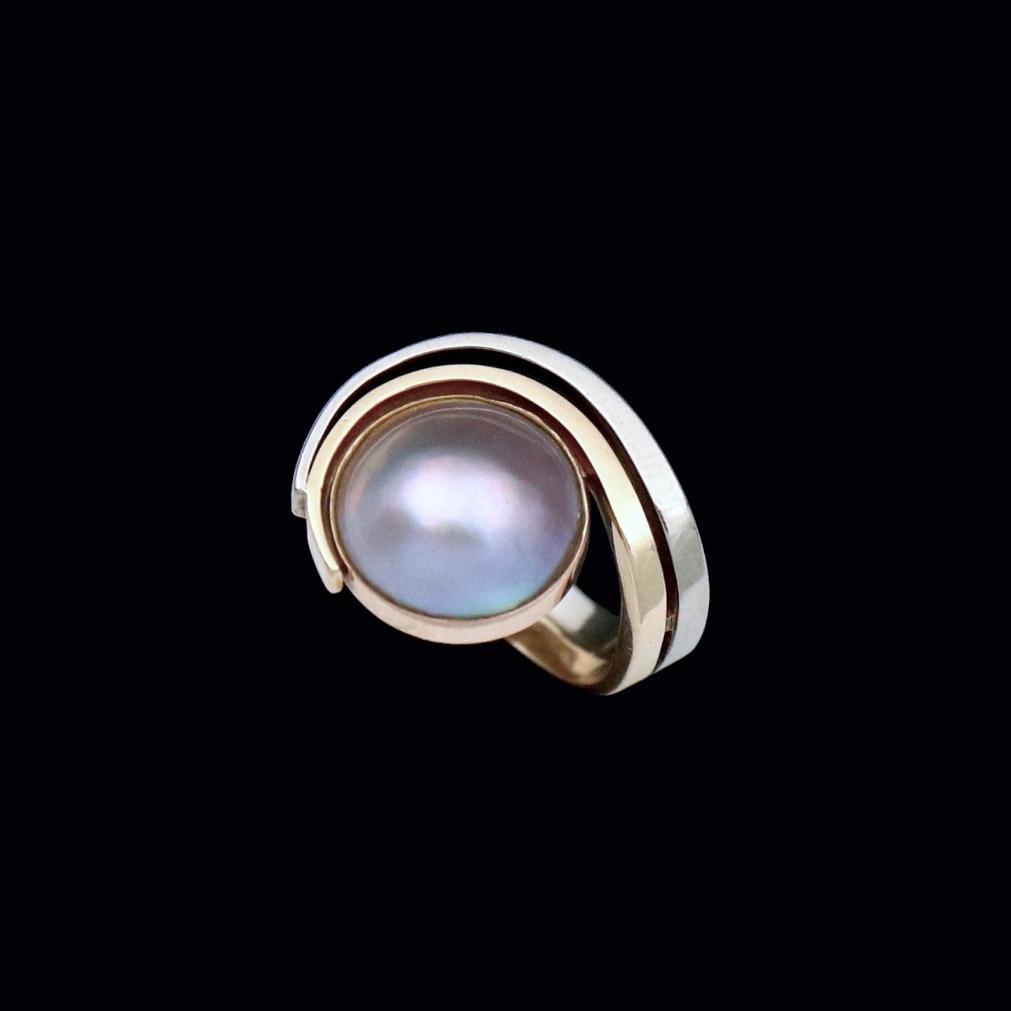 Birgitte Buchhave Munch. 14k White and Yellow Gold Ring with Mabé Pearl.