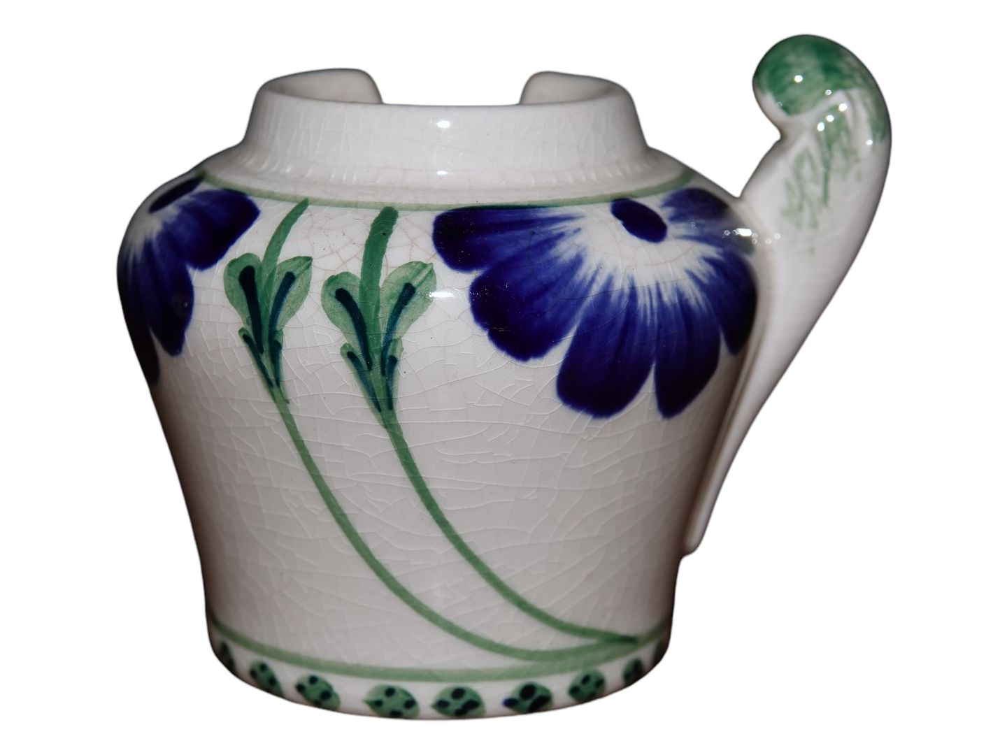 There is a crack in the glaze at the top rim, please see the pictures, otherwise excellent condition.