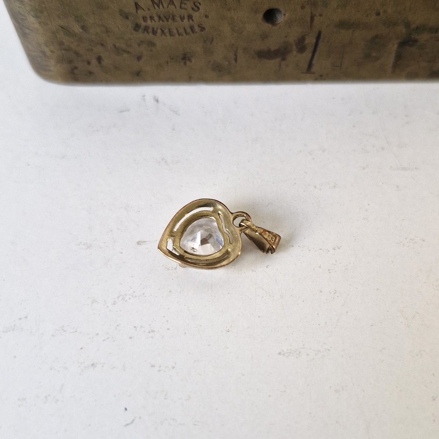 Vedhæng i 8 kt guld udformet som et hjerte med en hjerteformet slebet klar sten