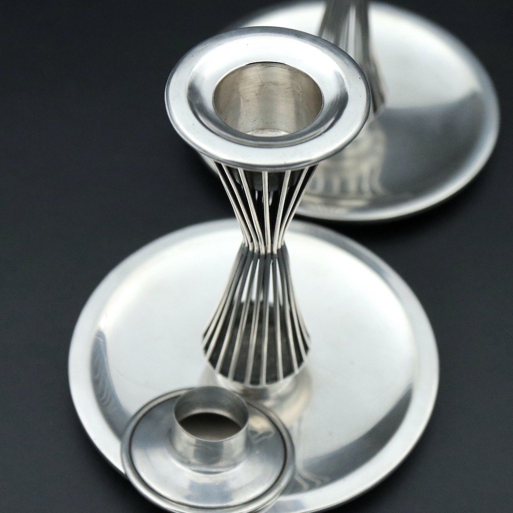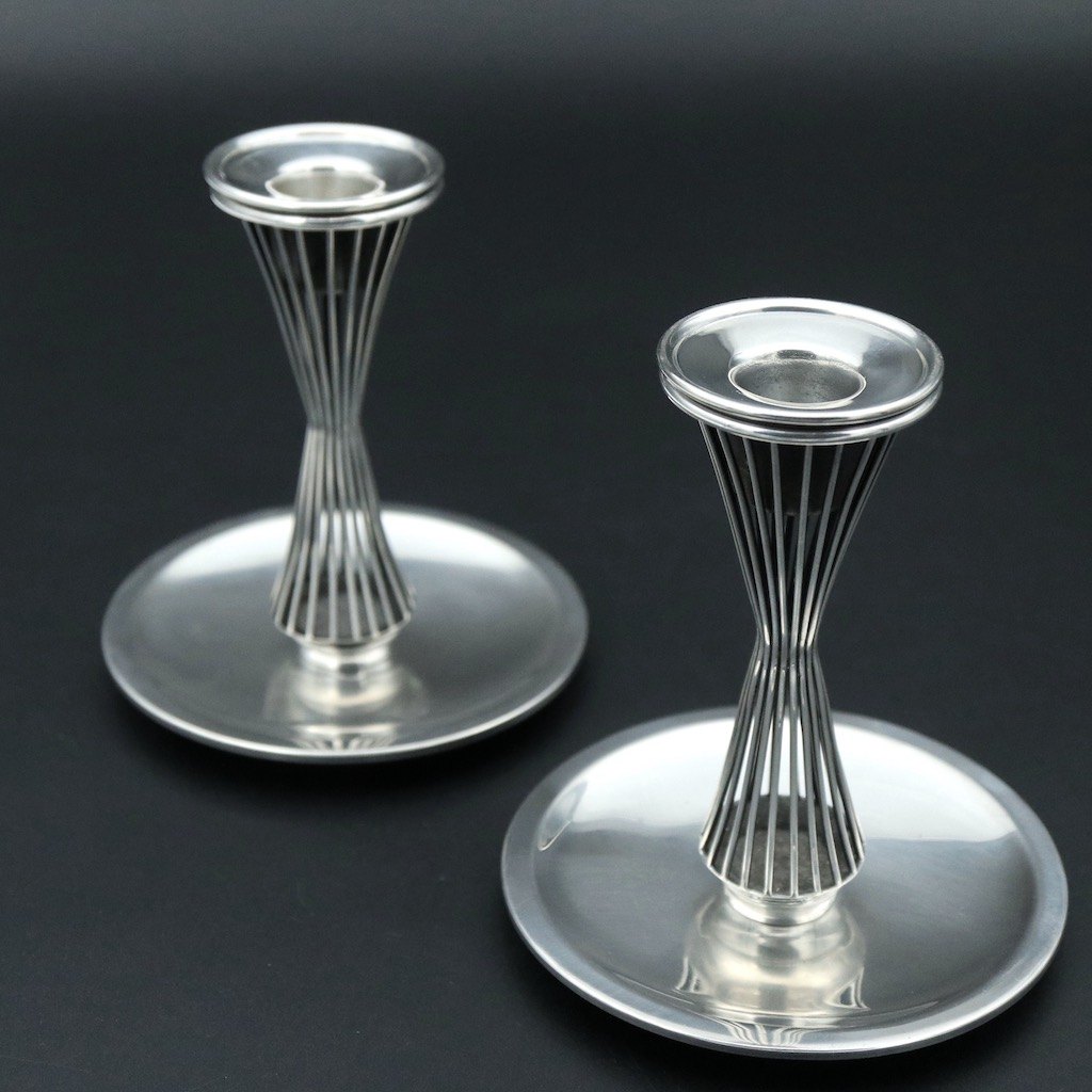 Svend Weihrauch - F. Hingelberg. Art deco Sterling Silver Candlesticks.
