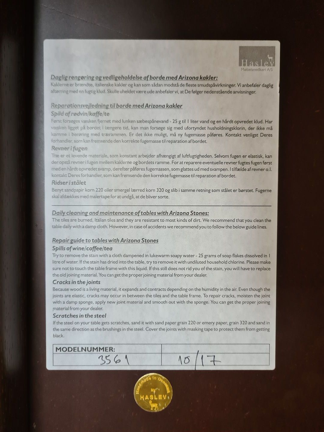 Haslev sofabord i bejdset egetræ og Arizonakakler, fra 2017.