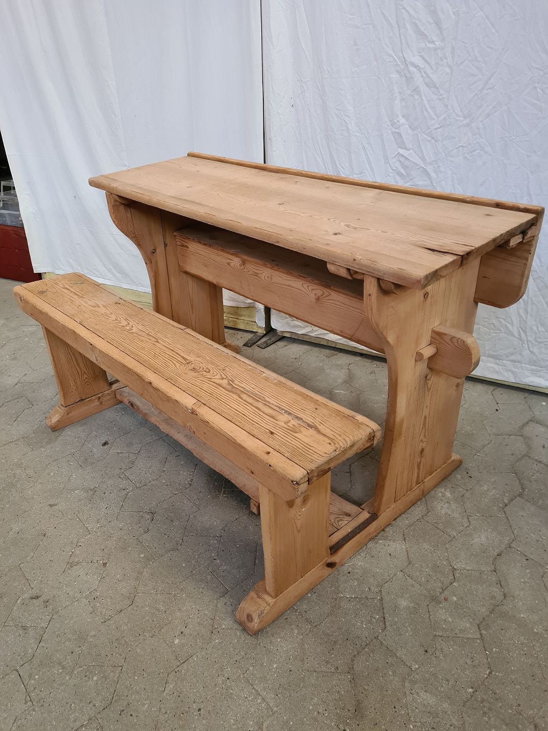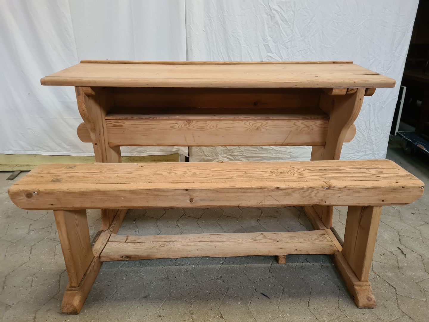 Gammelt skolebord i massivt fyrretræ, fra 1910erne.