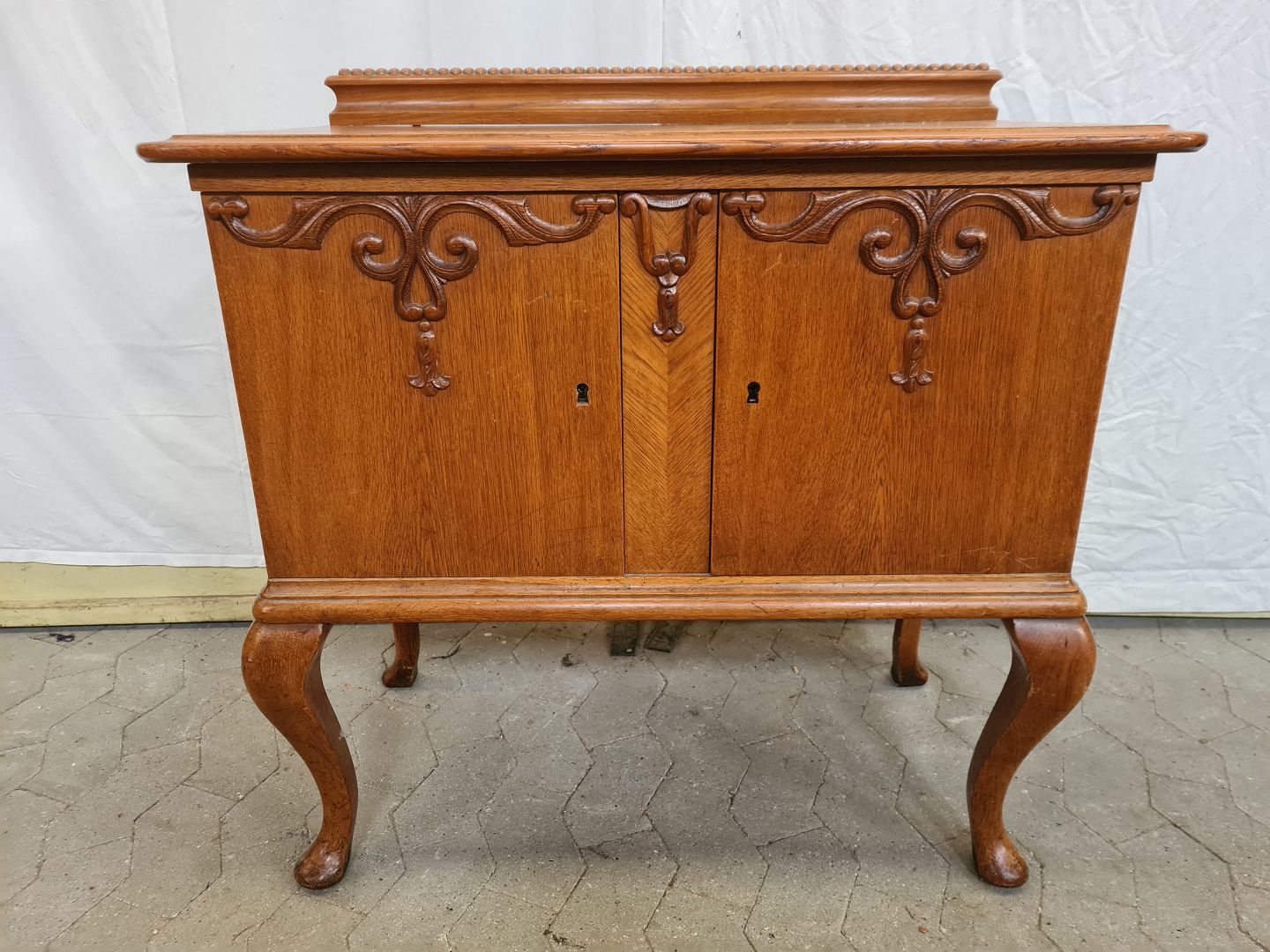 Anretterskab i fineret egetræ, fra 1920erne.
