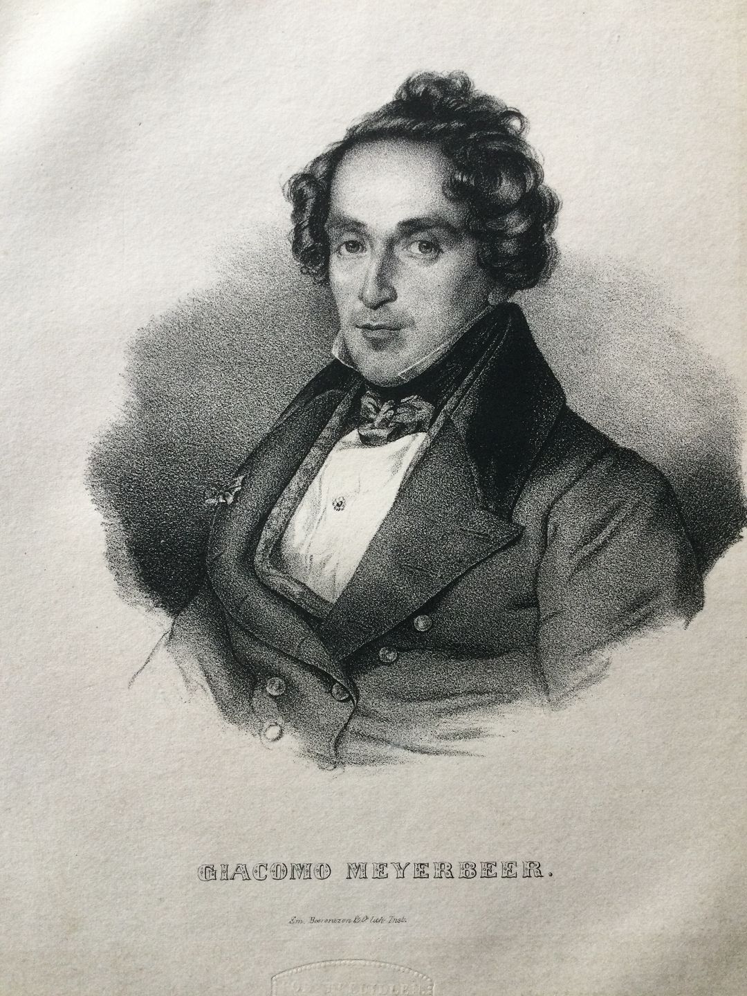 Litografi af Em. Bærentzen - Portræt af den tyske komponist Giacomo Meyerbeer 1839.
