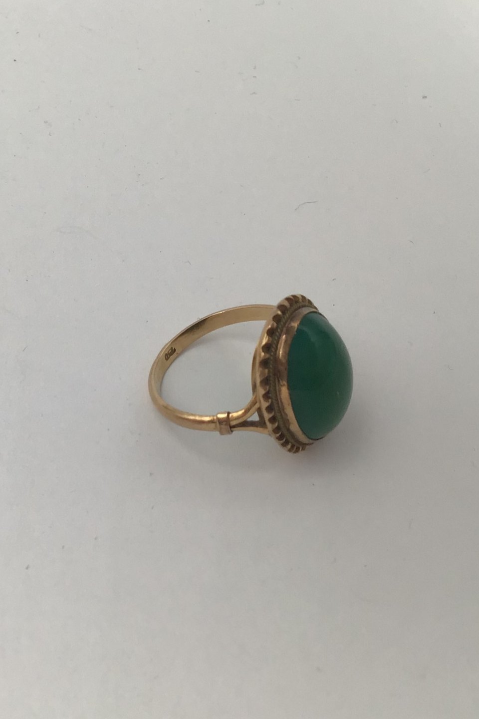18K Gold Ring with Green Agate Measures Ring Size 52 (US 6) Weight 4.7 gr. (0.17 oz)