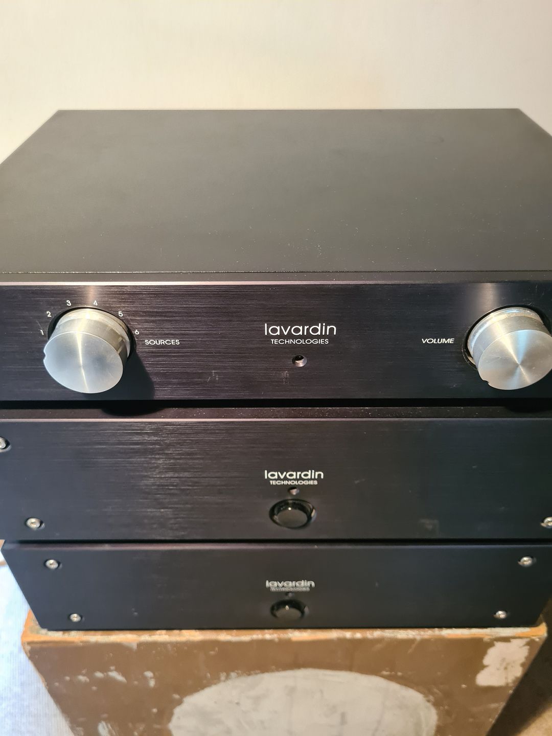 Forstærkersæt fra franske Lavardin Technologies bestående af 2 stk. mono effektforstærkere model MAP og forforstærker model C 62. Sættet er brugt sammen og omkring 9 år gammelt. Virker som det skal. Dog synes en anelse knasen når volumen opereres og phono indgang at brumme lidt mere end de andre indgange på C 62. Medføger strømførende kabler og originalt emballage.