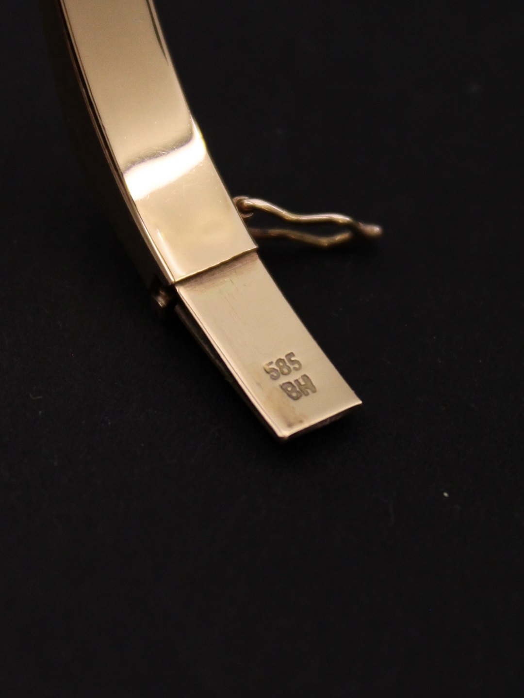 14 karat guld armring indvendig 5,9 x 5,2 cm. B. 0,57 cm. vægt 11,3 gram fra juveler B.Hertz København emne nr. 594239