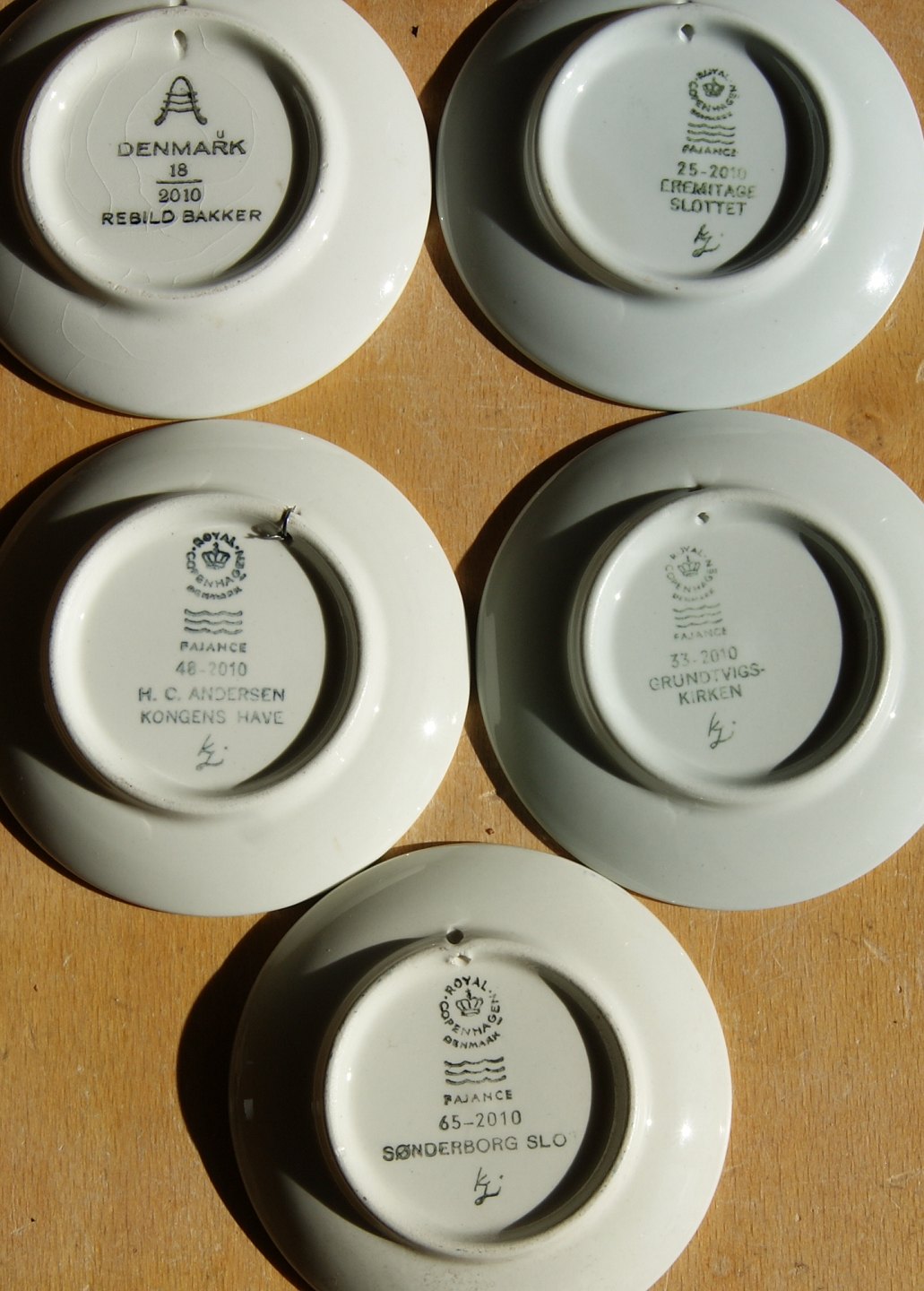 5 Plaquetter eller miniplatter fra Royal Cph. & Aluminia, med motiver fra Danmark.