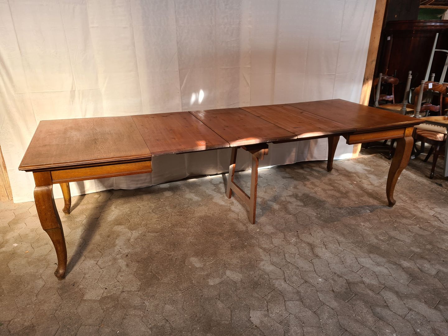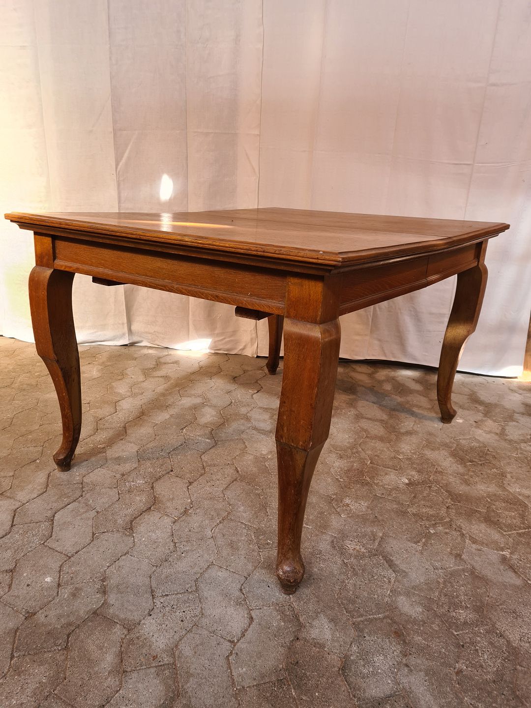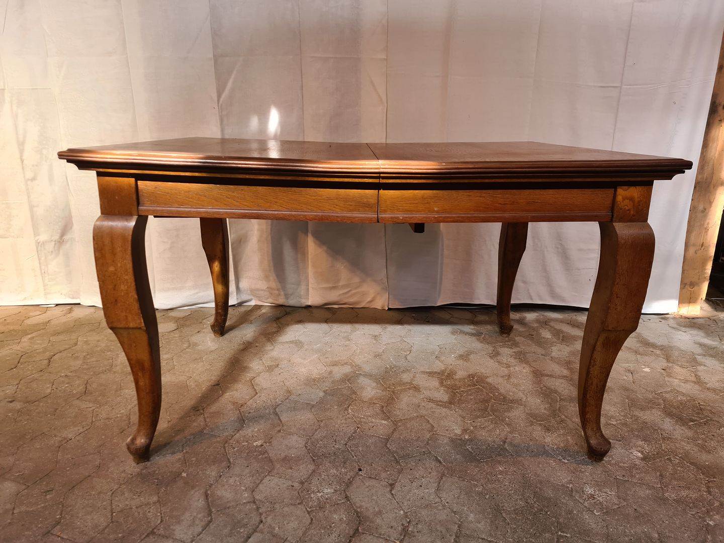 Spisebord i massivt egetræ med 3 tillægsplader, fra 1920erne.