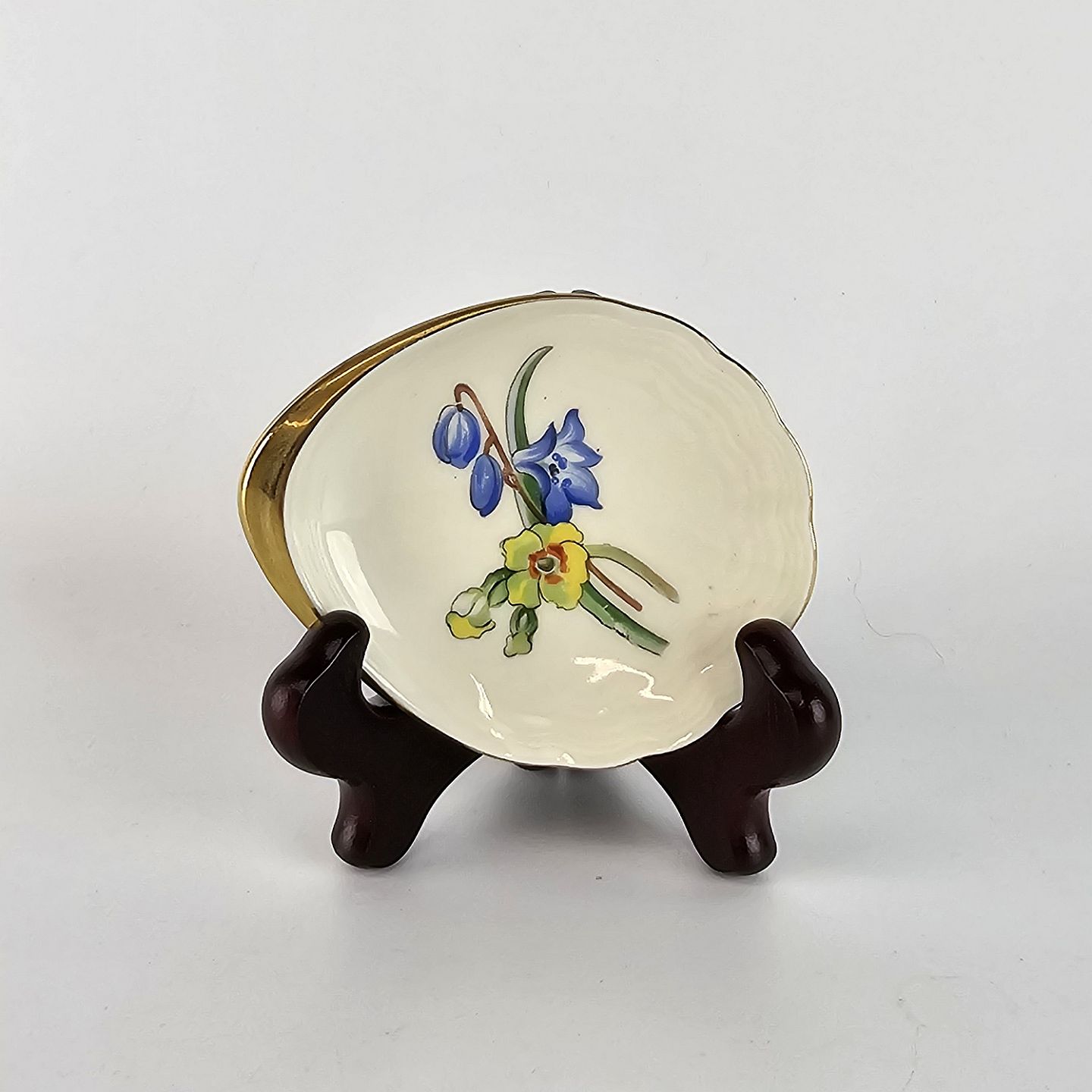 Njal er af creme farvet glaseret porcelæn, præget med skæl lignende mønster. Stellet er dekoreret med gul og blå blomster samt mønster af guld i kanten. Lettere brugsspor kan forekomme