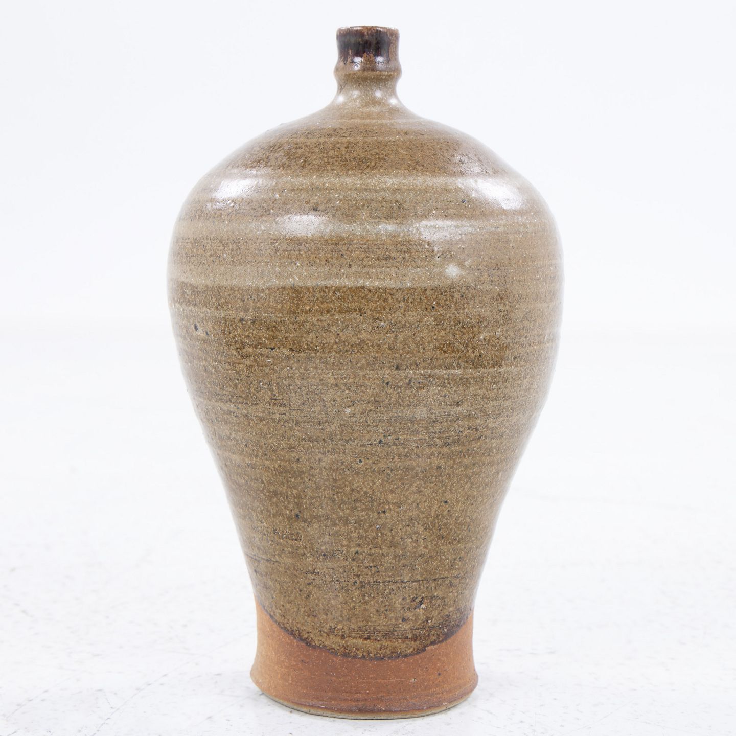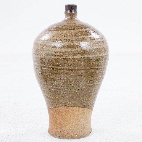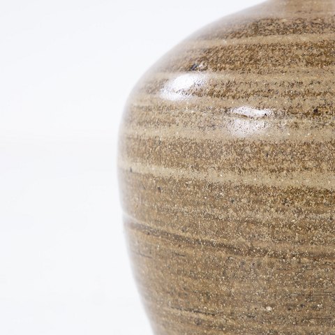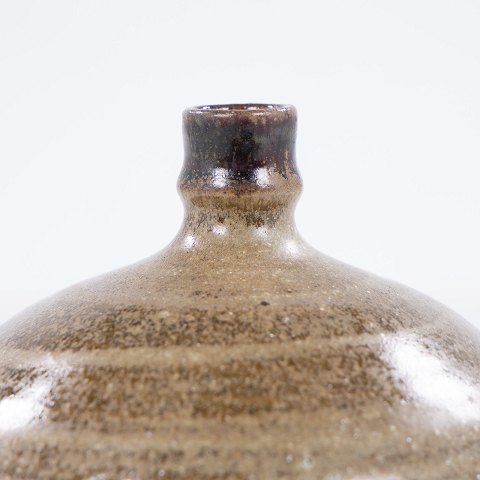 Vase in stoneware glazed in brownish shades with spout.